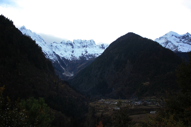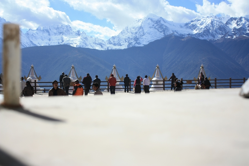 从芒康 坐班车到飞来寺下车,车费100,下午3点左右到达,天气不错,熟悉的观景台已建了围墙……
