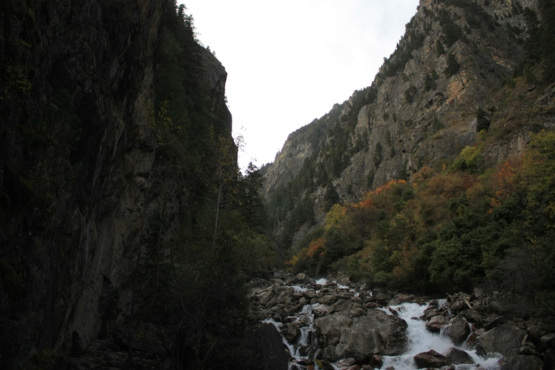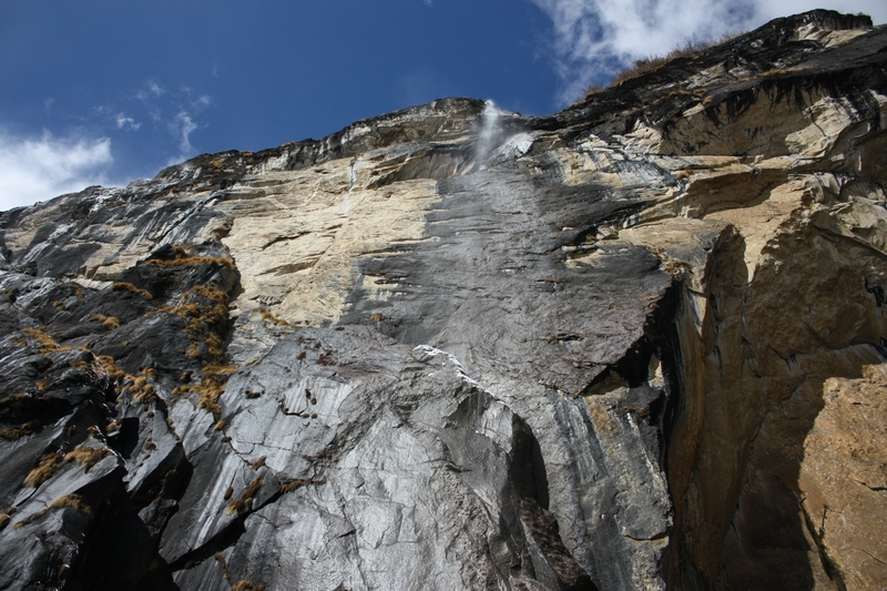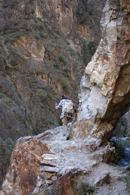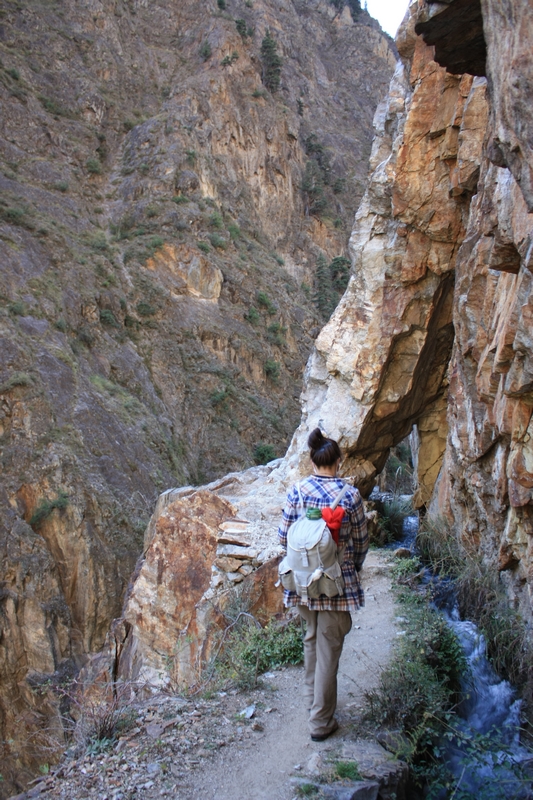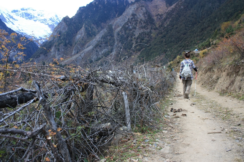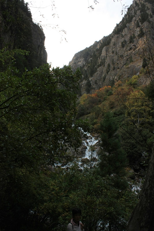 进了雨崩 河谷,很少看到山羊了,同样在峭壁上行走,但是路边多了一条水渠,部分路段需要涉水,雨季据说全部要涉水……途中碰到从雨崩 出来游客,再三告诫他们小心山羊!