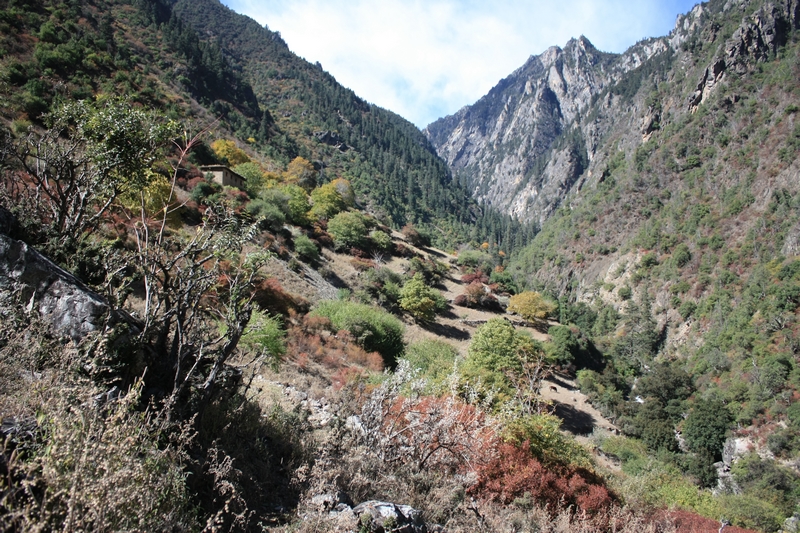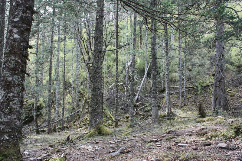 接着继续爬坡,坡度稍缓,半个多小时后到达垭口,接着要下去河谷,很陡,马走不了,只能在这里等我们。