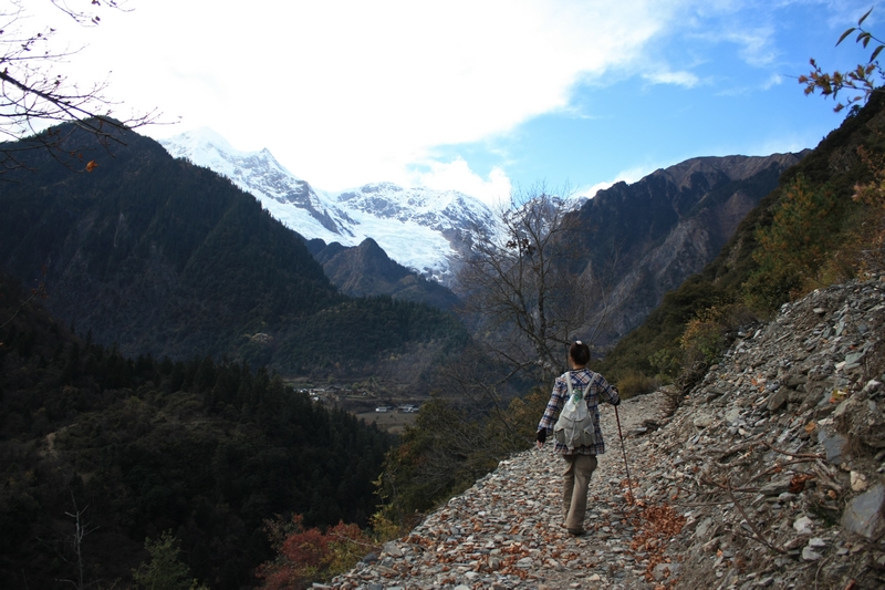 后来出现大路了,也渐渐看到雨崩 村了,已到极限,还好胜利在望。