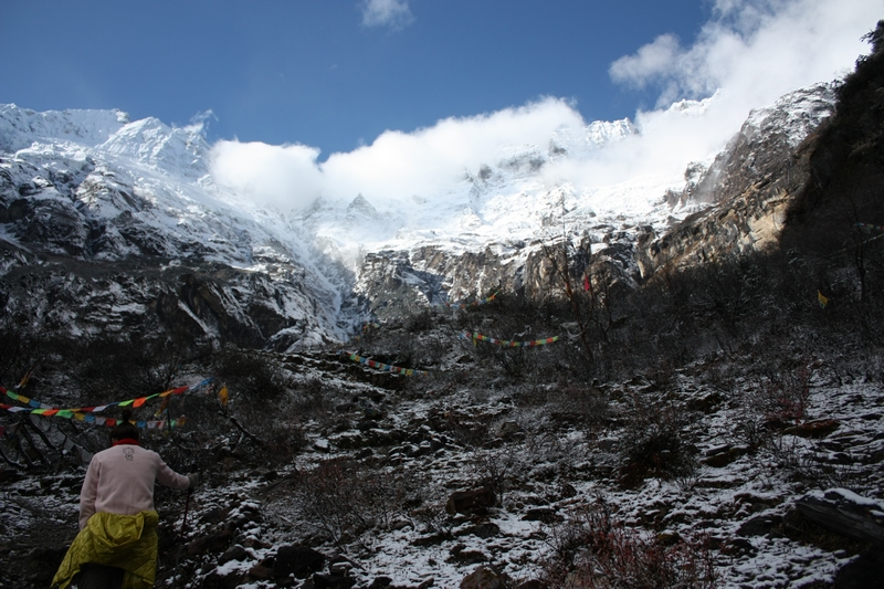 早上八点多与大伙告别,离开神瀑客栈,向神瀑进发。天气不错,云也不多,不过昨晚下了雪,山上可能会有积雪,Luna为表虔诚,放弃骑马,出雨崩 时再骑。其实去神瀑骑马真的没什么意义,很大一段路要自己下来走的。