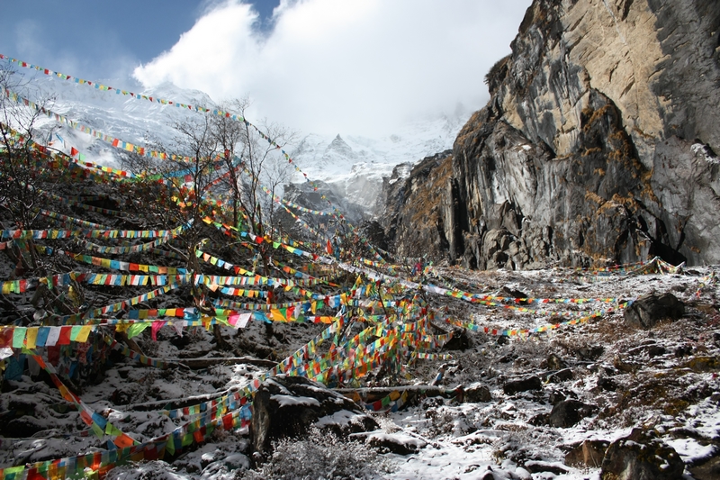 临近神瀑,密布经幡,我们小心穿过,附近有莲花生大师修炼处