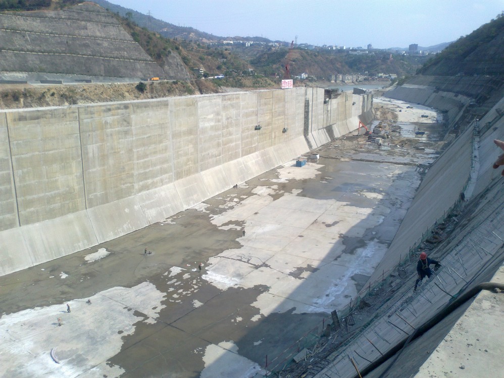 二滩水电站位于中国四川省、雅砻江干流下游河段上,距攀枝花市约40km。大坝为混凝土双曲拱坝,为使坝体应力分布均匀,坝肩推力更偏向山体,有利于坝身稳定,水平拱圈为二次抛物线,拱冠梁的上游面为三次多项式曲线。坝顶高程1205m,顶部厚度11m,拱冠梁底部厚度55.74m,拱端最大厚度58.51m,厚度比0.232,拱圈最大中心角91.49°,上游面最大倒悬度0.18。坝顶弧长775m。坝体混凝土量400万m3。为混凝土双曲拱坝,最大坝高240m,水库总库容58亿m3,水电站装机容量330万kW,保证出力100万kW,多年平均发电量170亿kW·h。工程以发电为主,兼有其他等综合利用效益。1991年9月开工,1998年7月第一台机组发电,2000年完工。