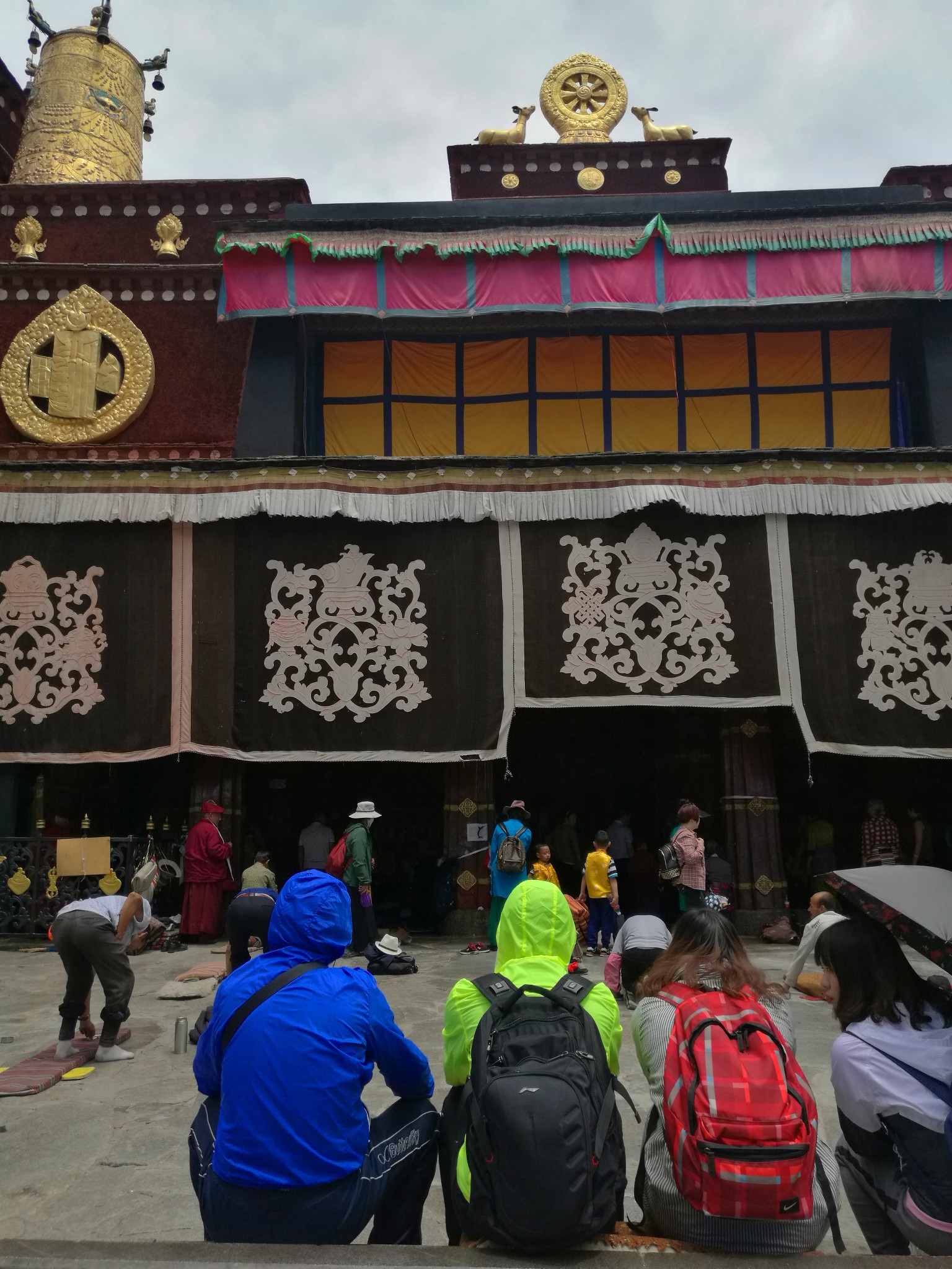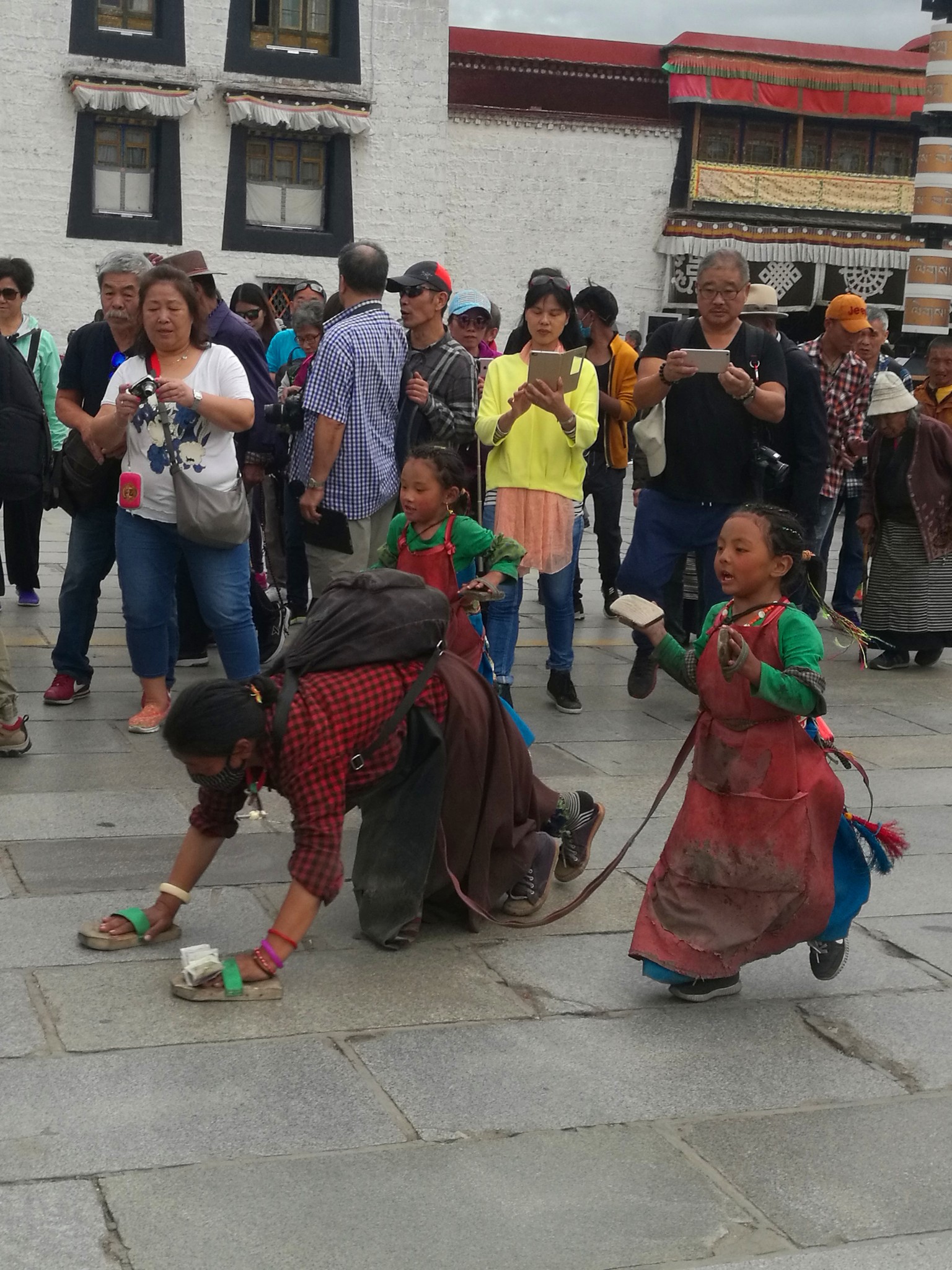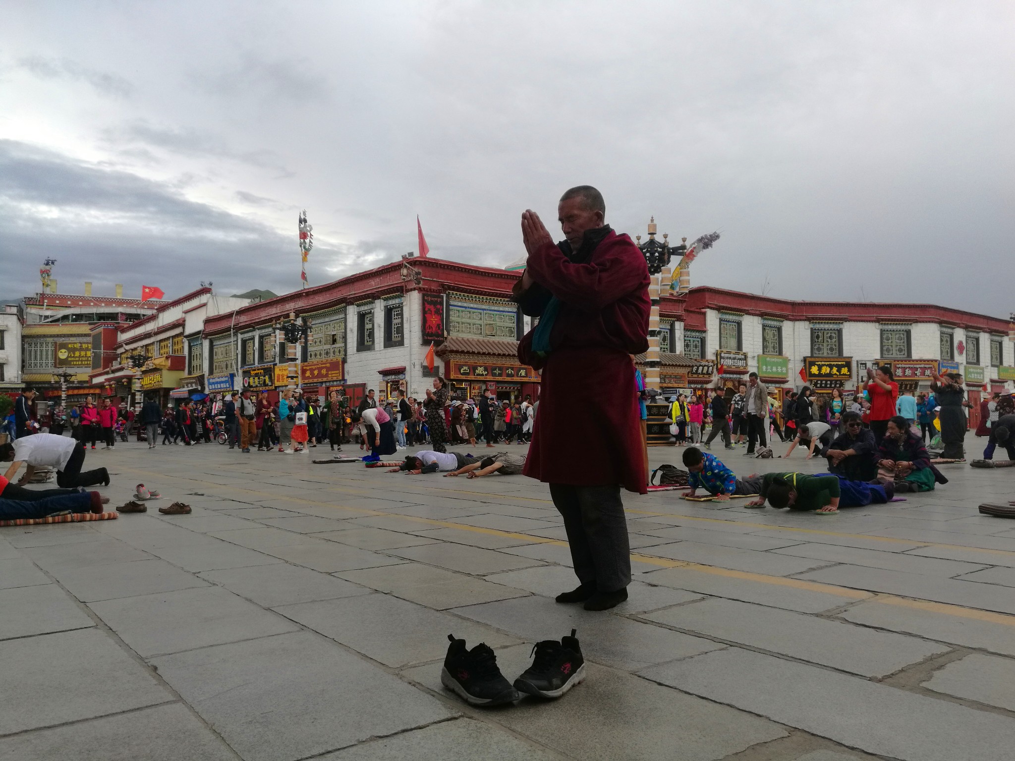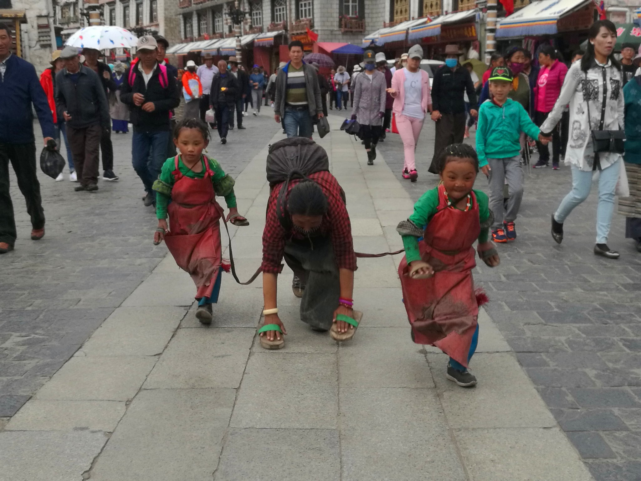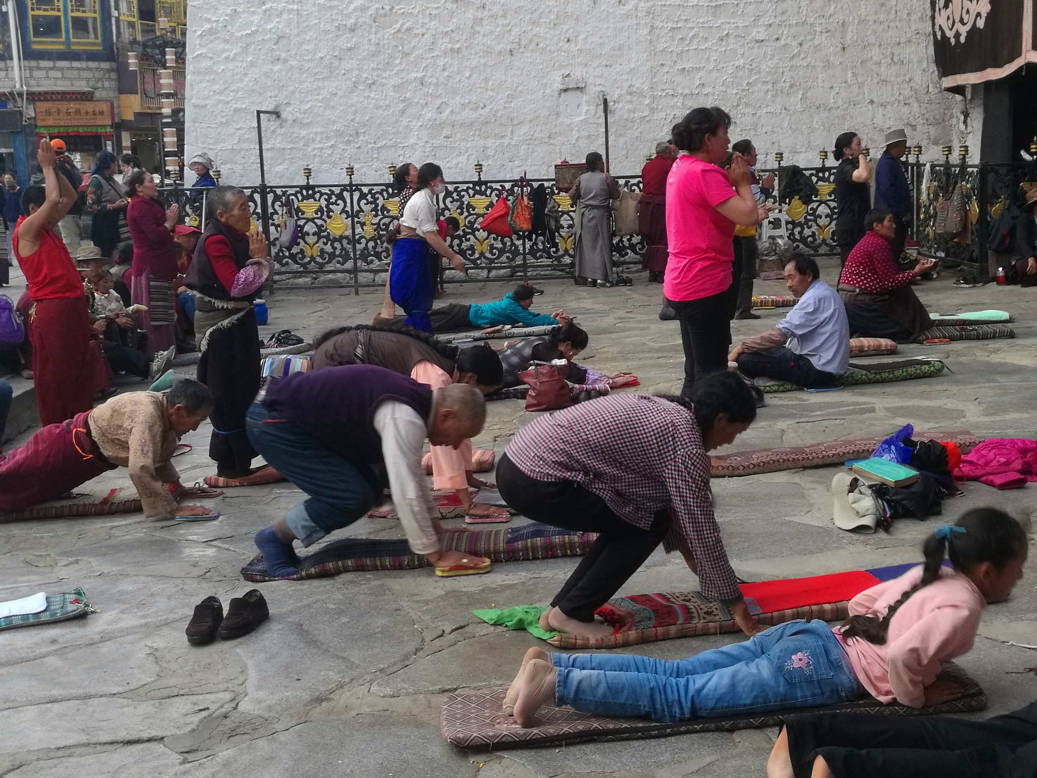 据说:一年四季不论雨雪风霜、在大昭寺外都有磕长头的信众,他们来自藏区的名个地方,有青海的、甘肃的、四川的,当然也有很多是拉萨当地的