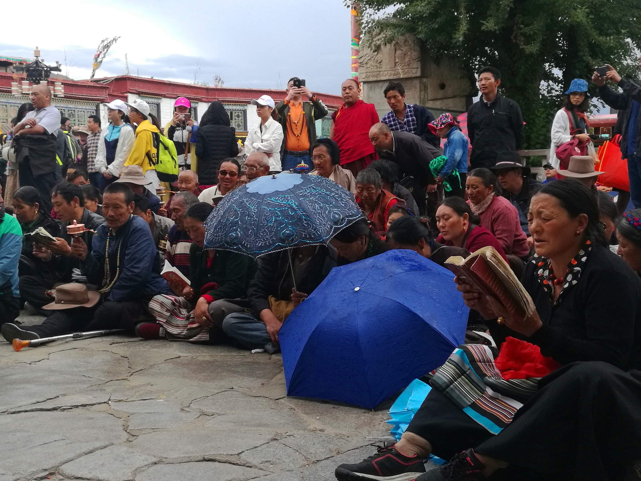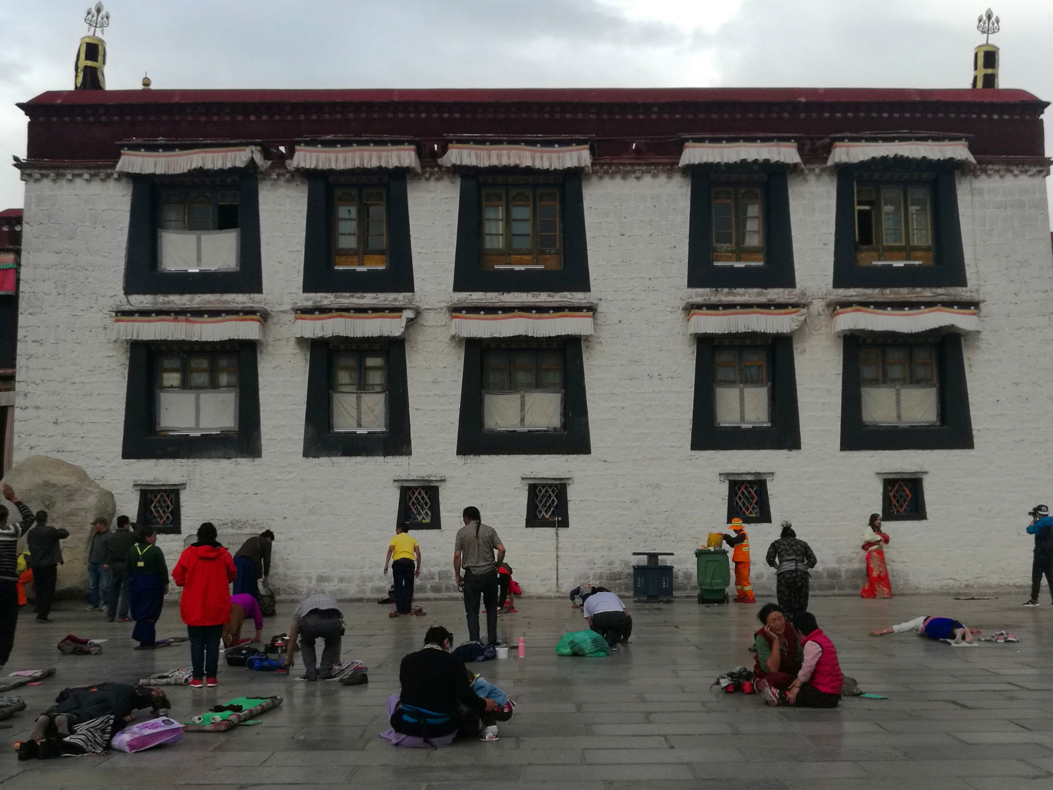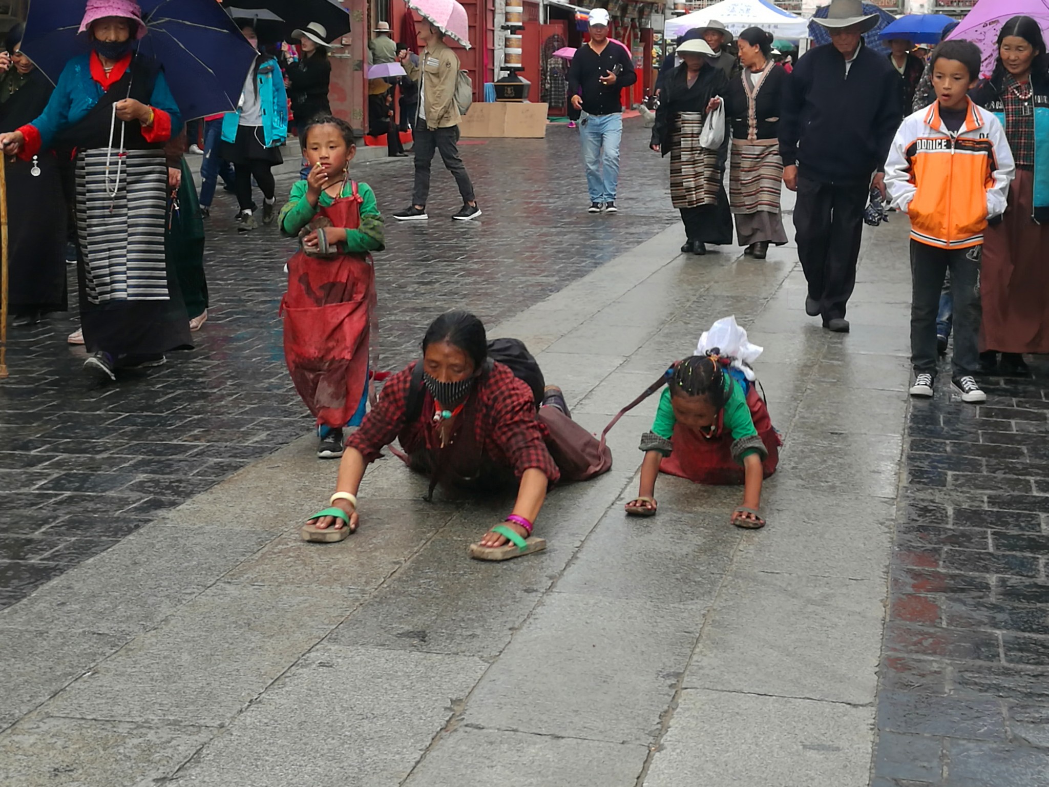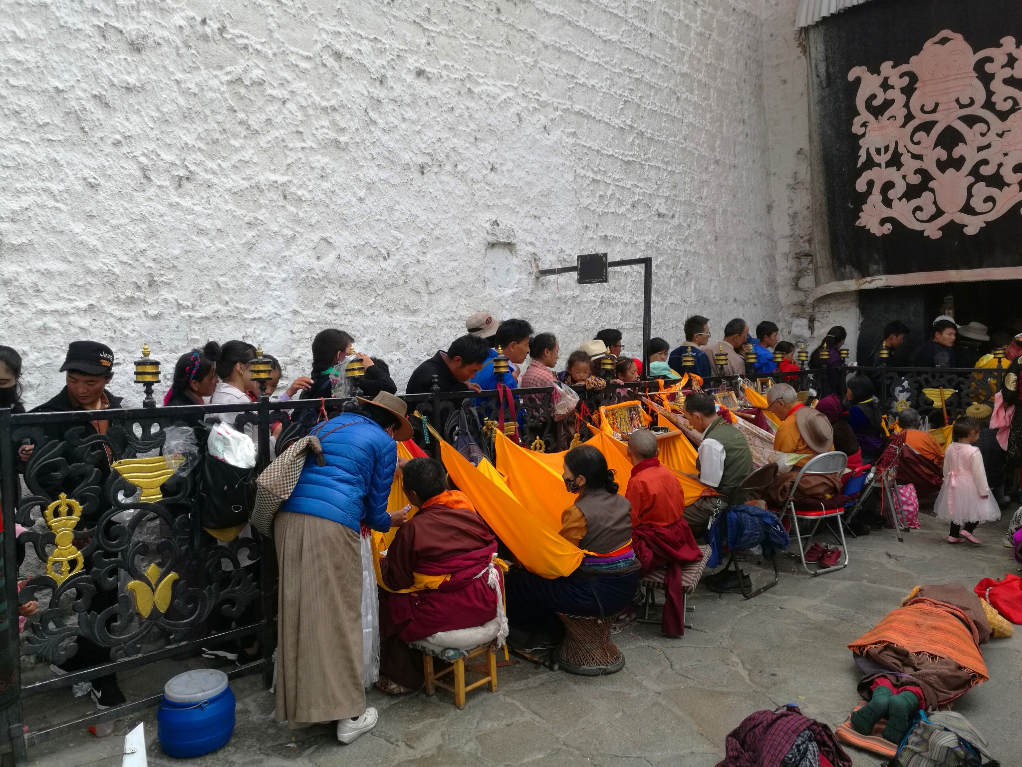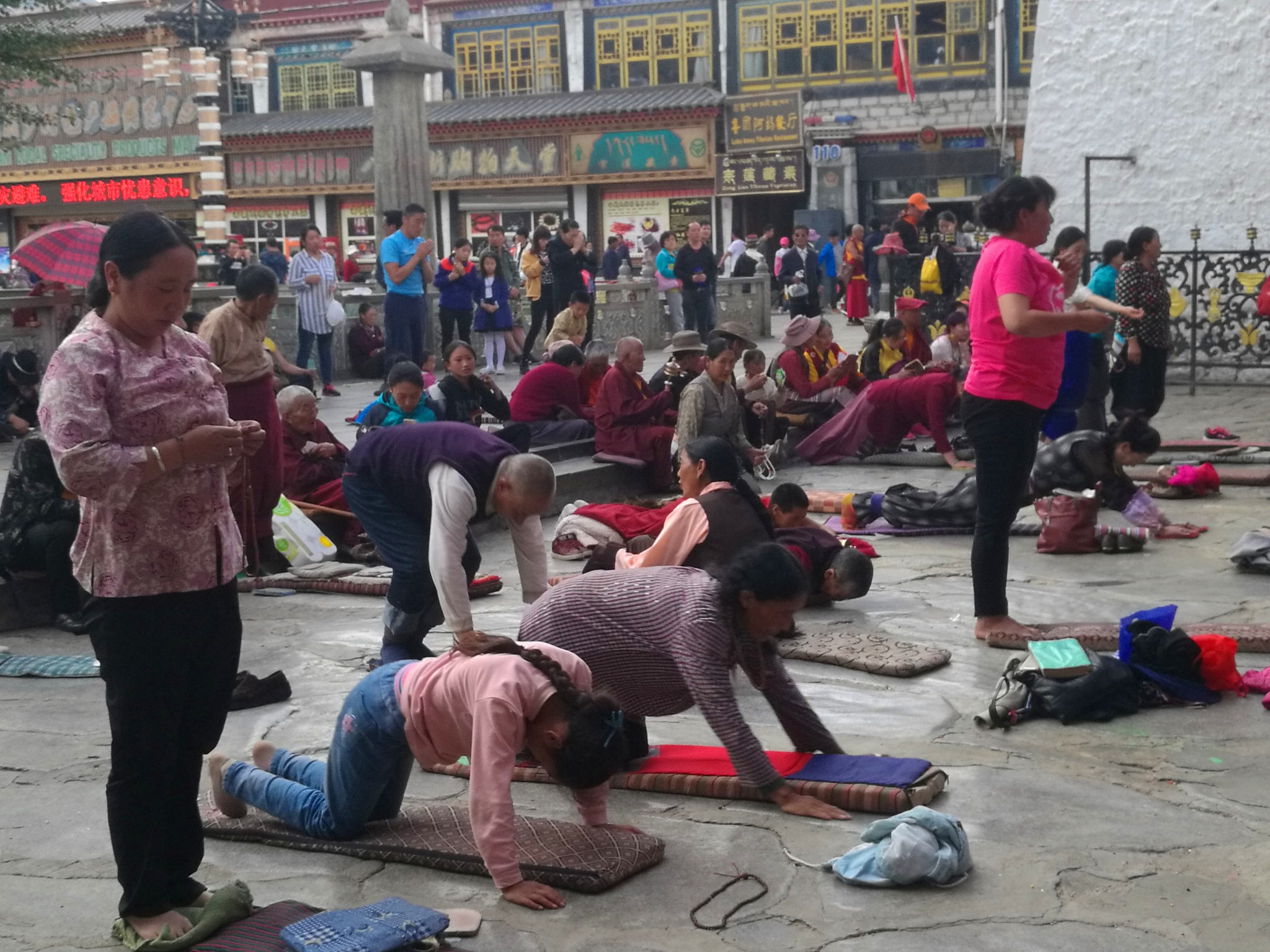 据说:一年四季不论雨雪风霜、在大昭寺外都有磕长头的信众,他们来自藏区的名个地方,有青海的、甘肃的、四川的,当然也有很多是拉萨当地的