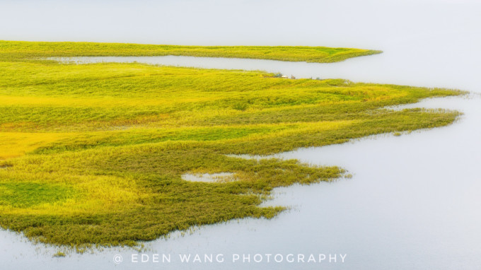 初夏,水没地萌发了密密麻麻的各种各样的小草,小麦、油菜也初绽嫩芽,先给水没地披上了淡淡的绿纱,亦透迹露,朦朦胧胧,继而变成无垠的绿地。(最佳时间:5月1日-5月25日)