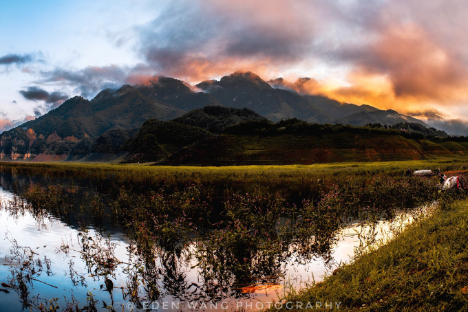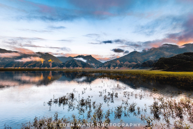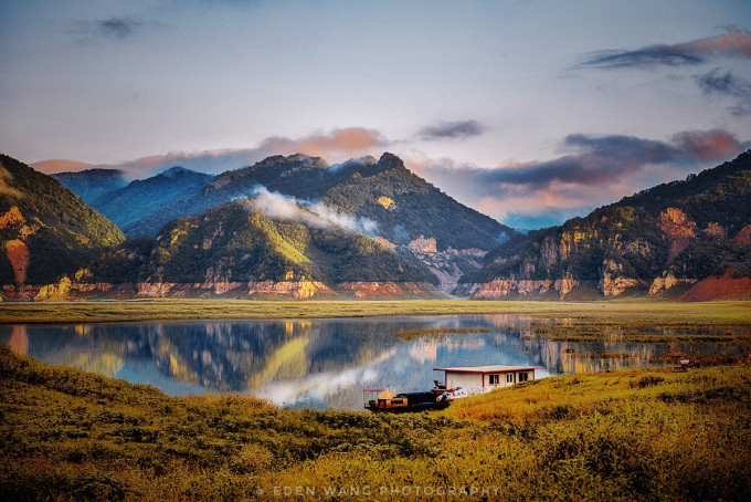 凌晨三点半爬起来,前一晚酒店老板娘给我们指了个方向,说是日出的时候山露出半边就像乌龟探头,特好看,我们仨就找了一座自认为最像乌龟的山等了半天,最后太阳从我们另一侧升起来了.......四点半回酒店,江被染成红色,美到极致,五点半我们决定趁着光好一路返程,边走边拍。