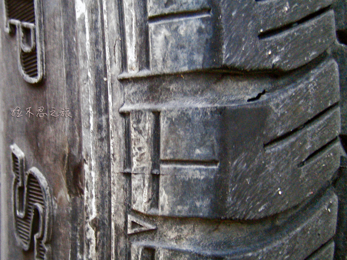 直径1cm左右,深度8mm左右,丁丁用牙签挑出部分玻璃渣,明显感觉还有残留胎内的,但是担心深挑会致使车胎罢工,决定留待观察,到洛阳 再修。