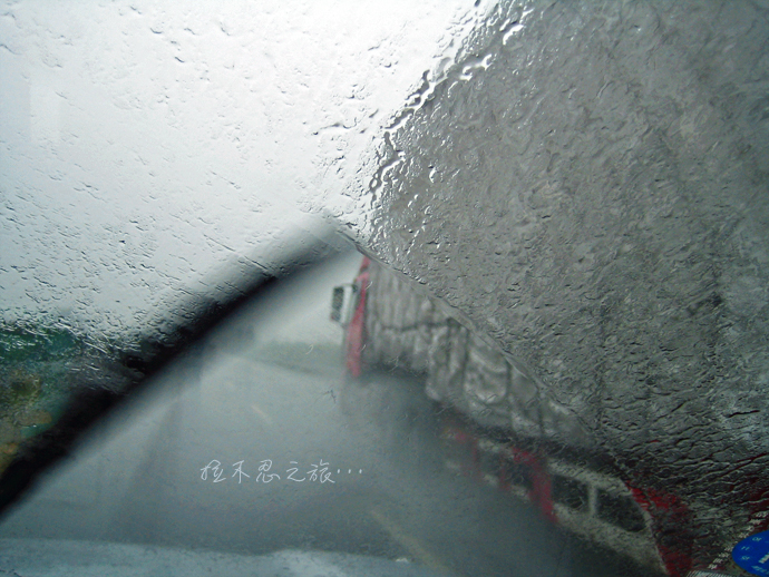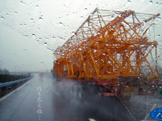 No11 从各种大货车旁边超车时,其后轮溅起的雨雾,让小白胆战心惊。
