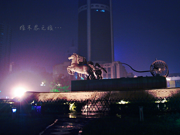 No21 一碗热气腾腾的羊肉烩面之后,我们都饱过头了,雨中散步穿过周王城广场,相信晴天的晚上,这里一定是市民纳凉的好场所,雨天,静静地...