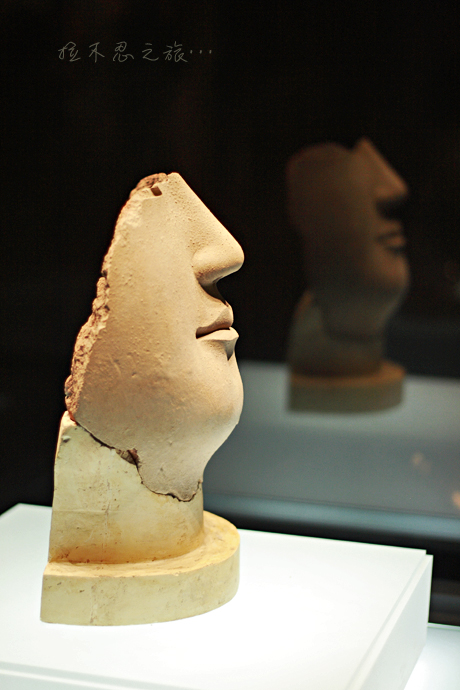 No44 这是北魏时期泥塑人面半像,镜中影陪着她,虚虚实实~