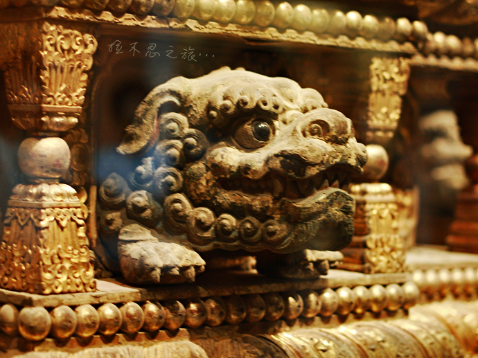 No47 鎏金大型木雕上嵌着石刻,太特 别的组合~
