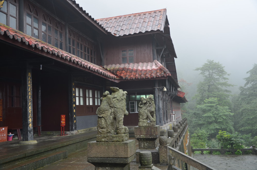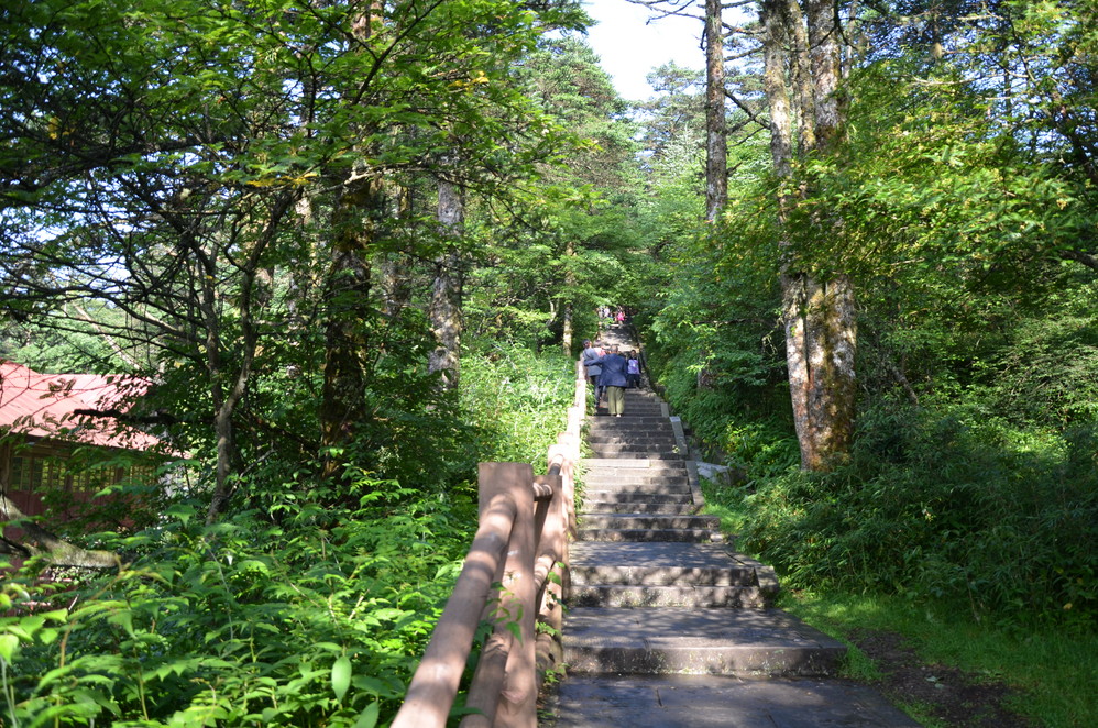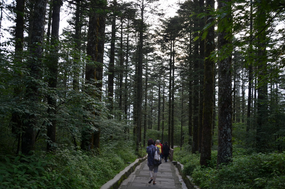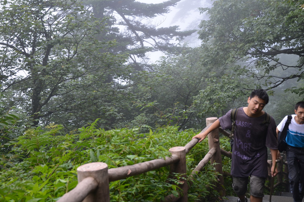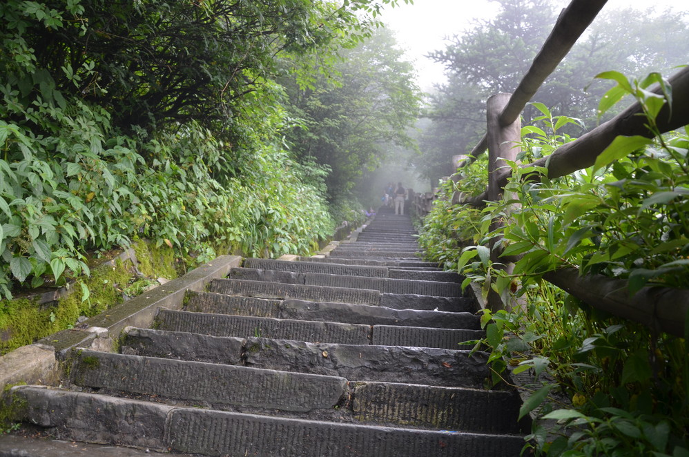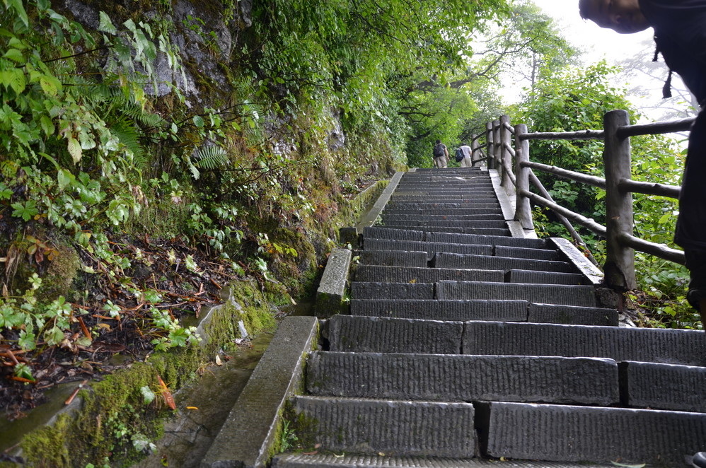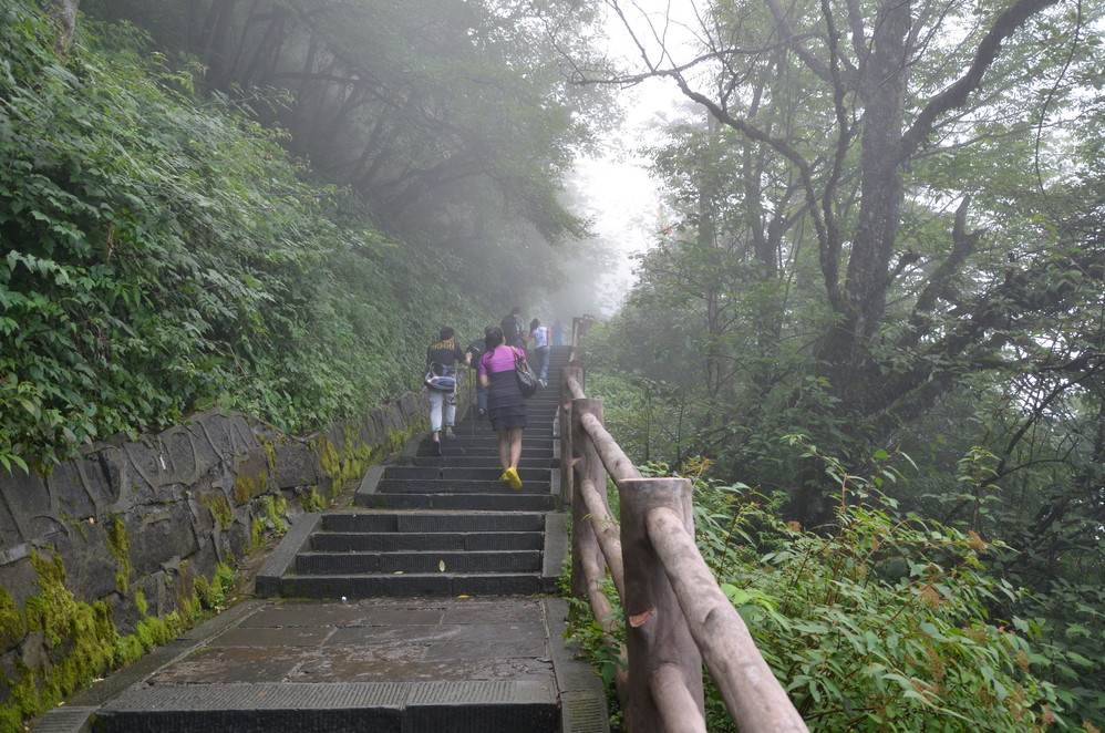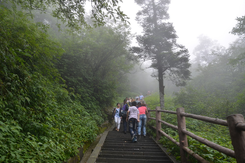 第二天出发:五显岗-->清音阁-->九十九道拐-->仙峰寺-->洗象池-->雷洞坪-->金顶-->雷洞坪-->五显岗,早上下了雨,等,等,等,等不下去了,出发~