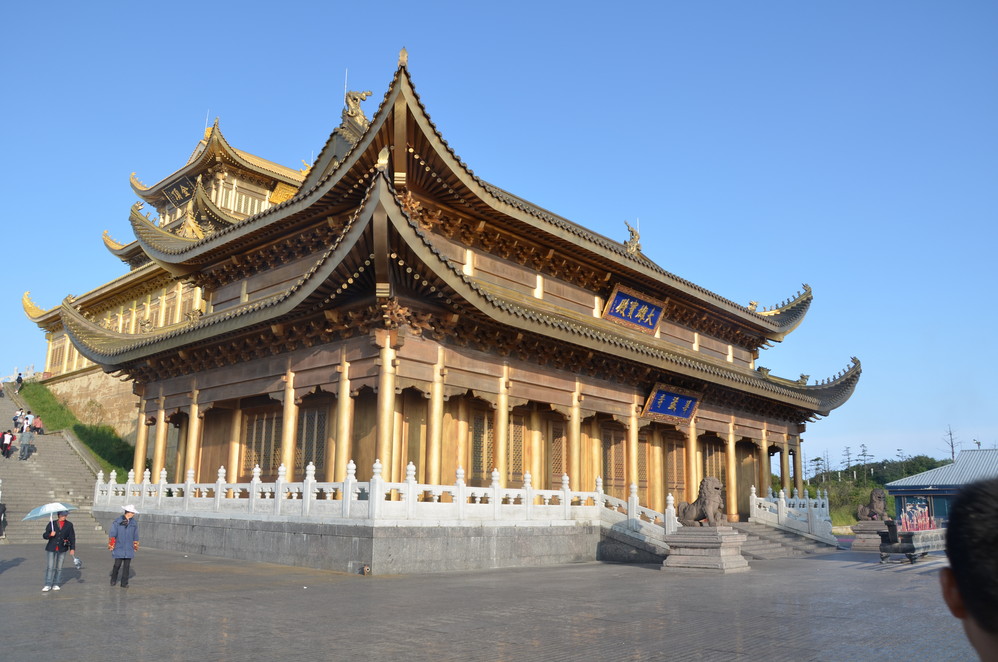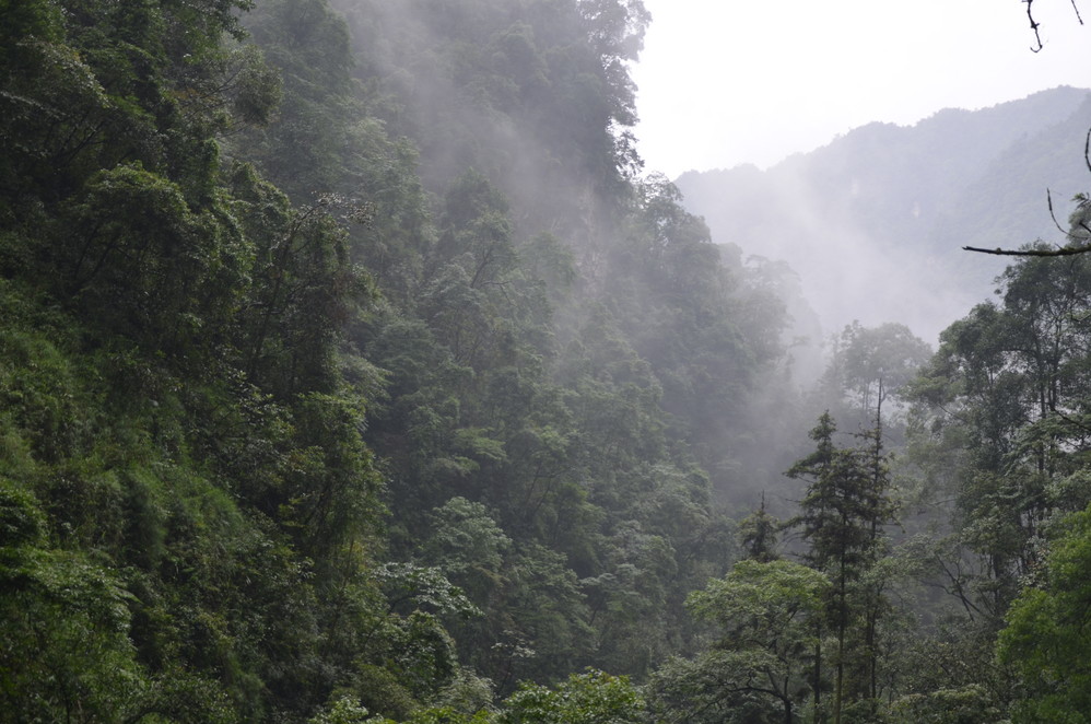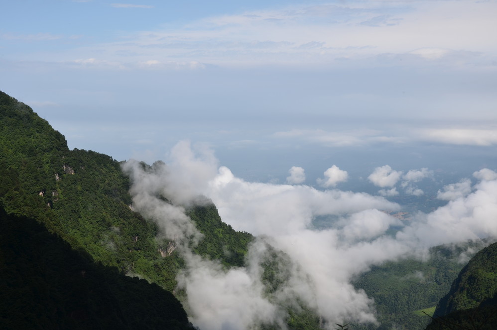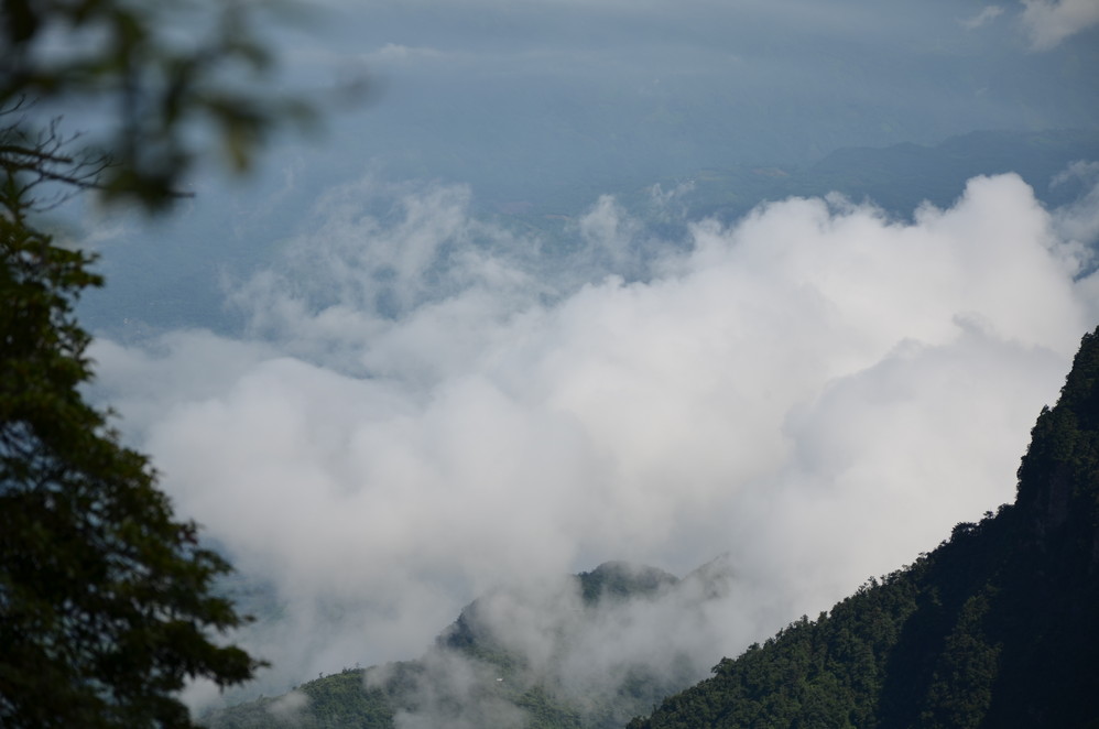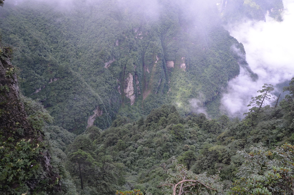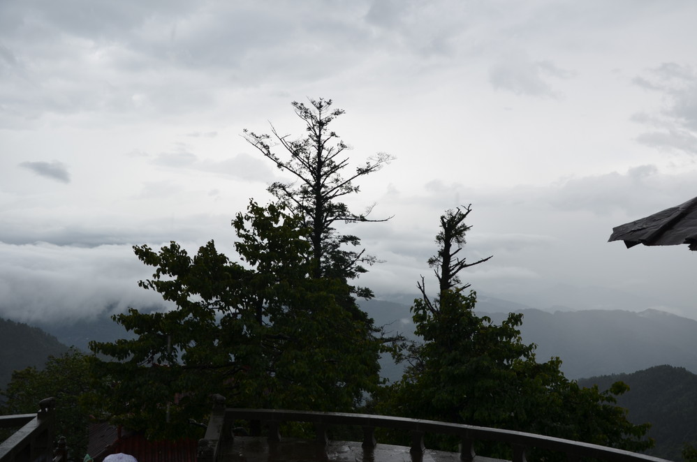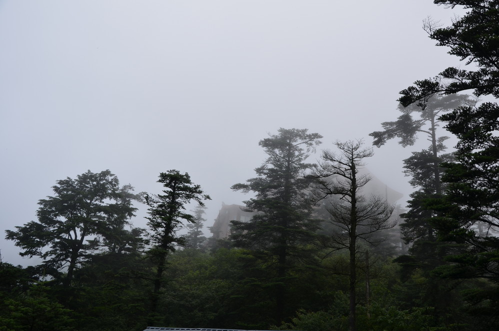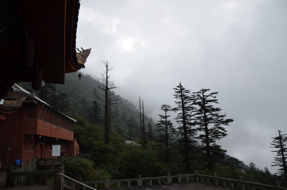 第二天出发:五显岗-->清音阁-->九十九道拐-->仙峰寺-->洗象池-->雷洞坪-->金顶-->雷洞坪-->五显岗,早上下了雨,等,等,等,等不下去了,出发~