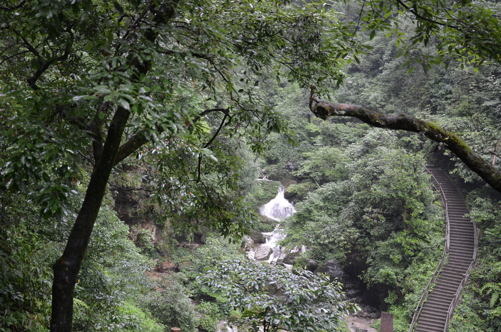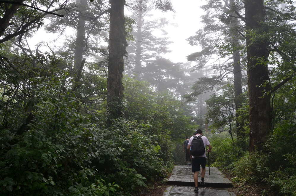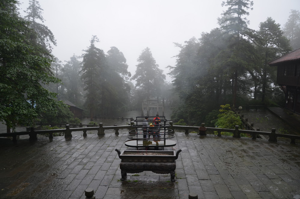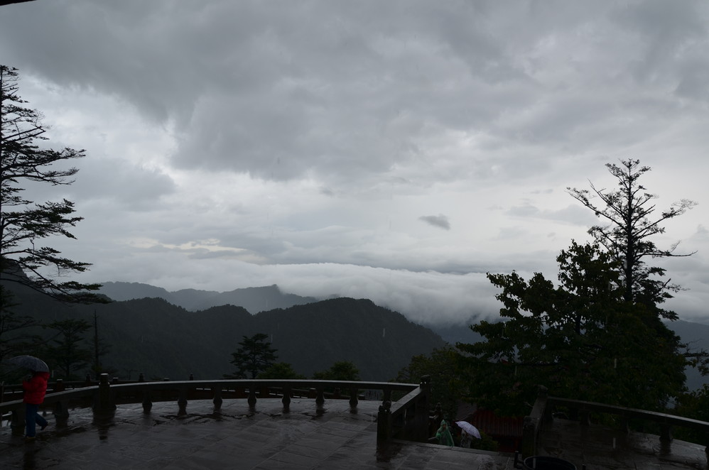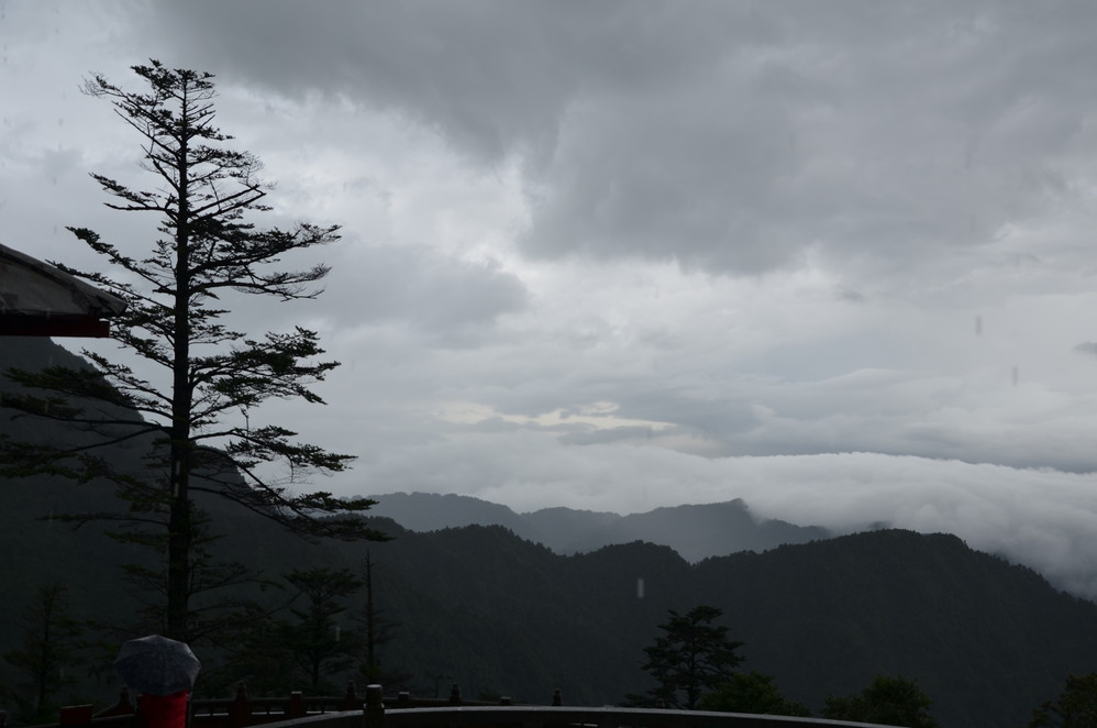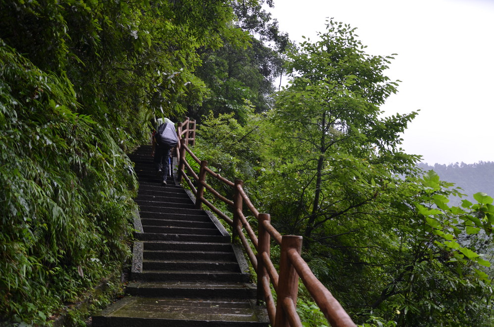 过了遇仙寺不久,就开始雨的狂欢了,收起相机然后用塑料袋封好,这样即使防雨罩有问题,这宝贝丫也会安 然无恙,一直到洗象池,登山最惨的一次,雨大得能让你的雨伞一点作用不起,当然也有山风的功劳,真是狂风吹,大雨下~~