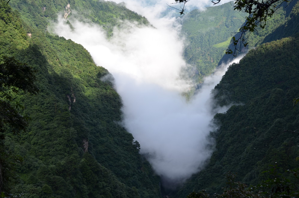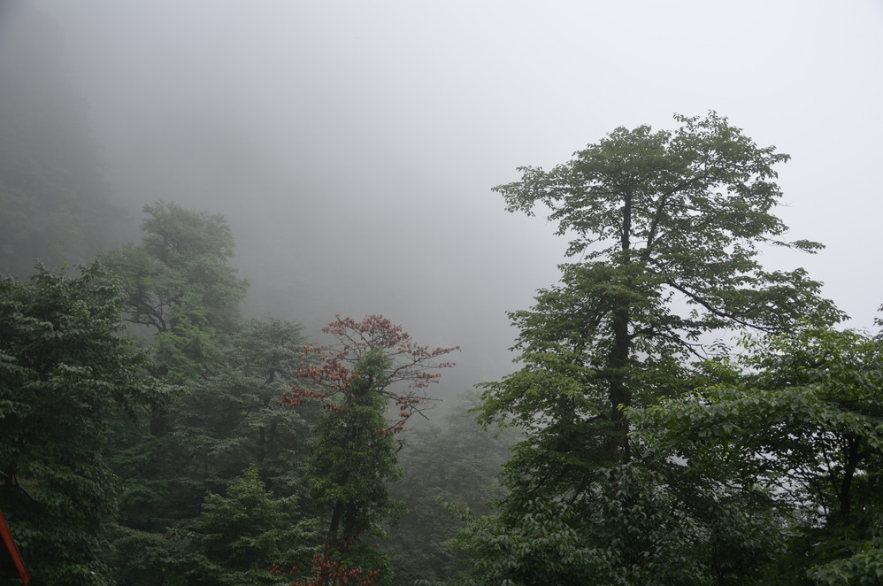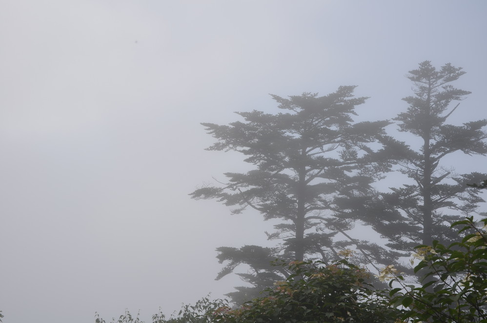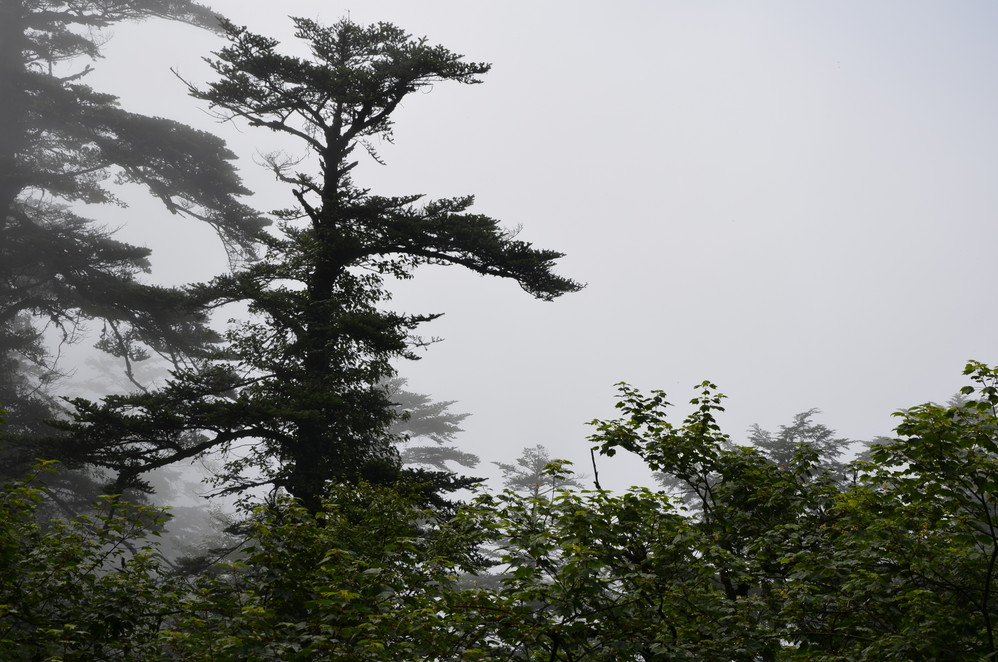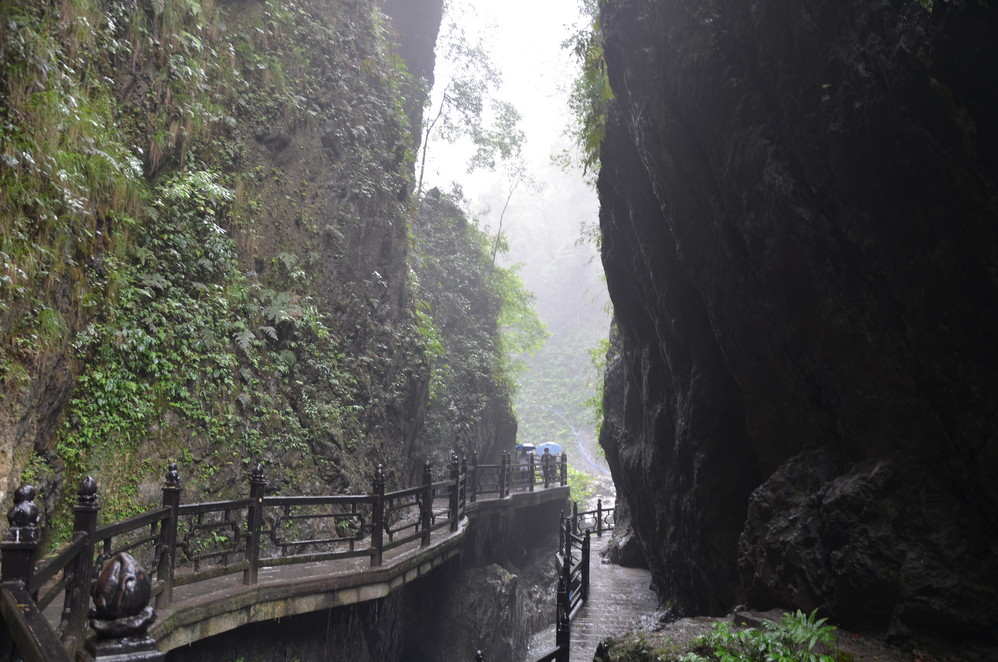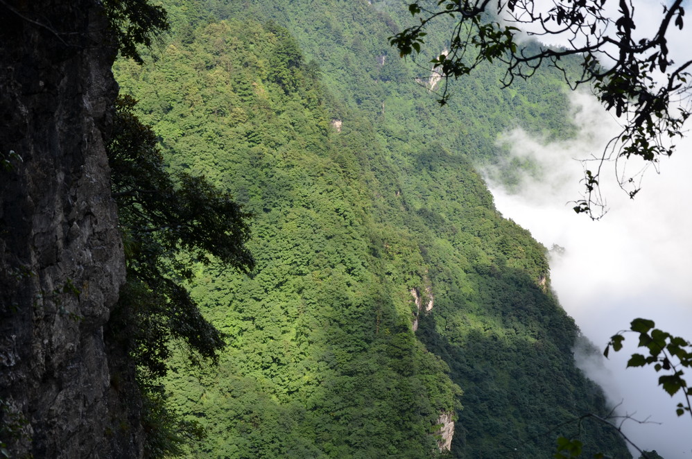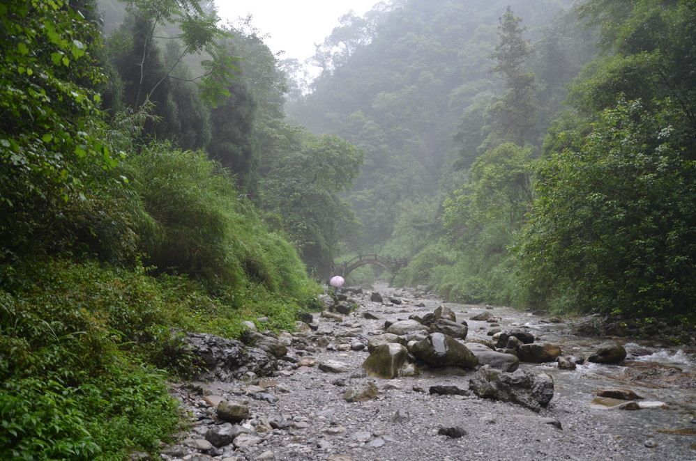 过了遇仙寺不久,就开始雨的狂欢了,收起相机然后用塑料袋封好,这样即使防雨罩有问题,这宝贝丫也会安 然无恙,一直到洗象池,登山最惨的一次,雨大得能让你的雨伞一点作用不起,当然也有山风的功劳,真是狂风吹,大雨下~~