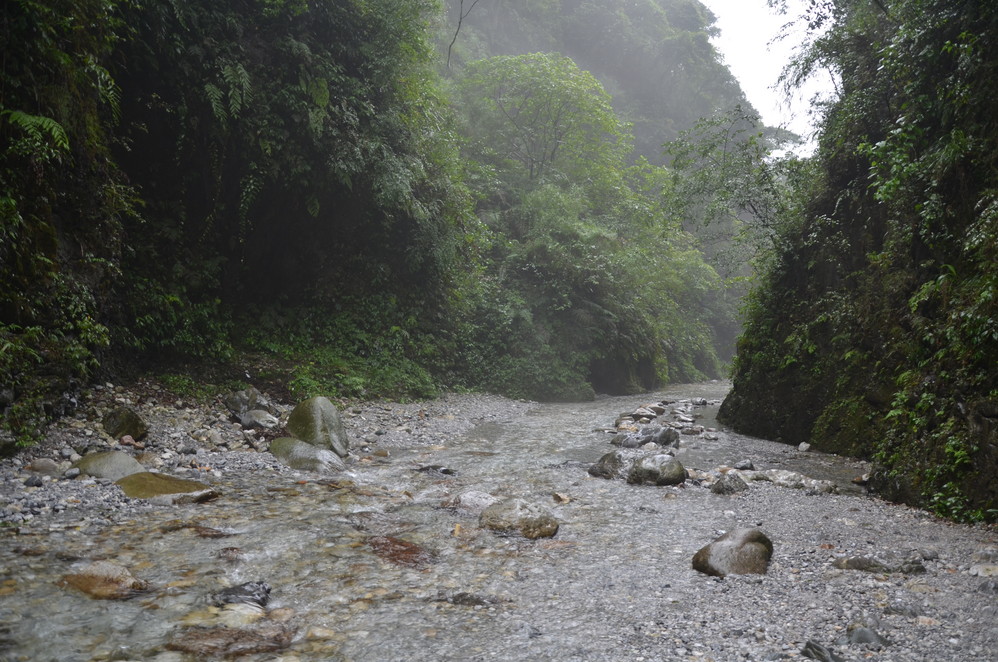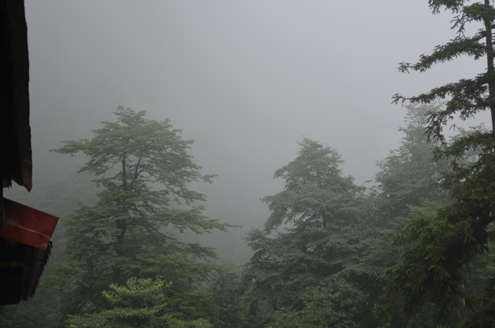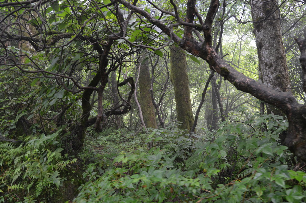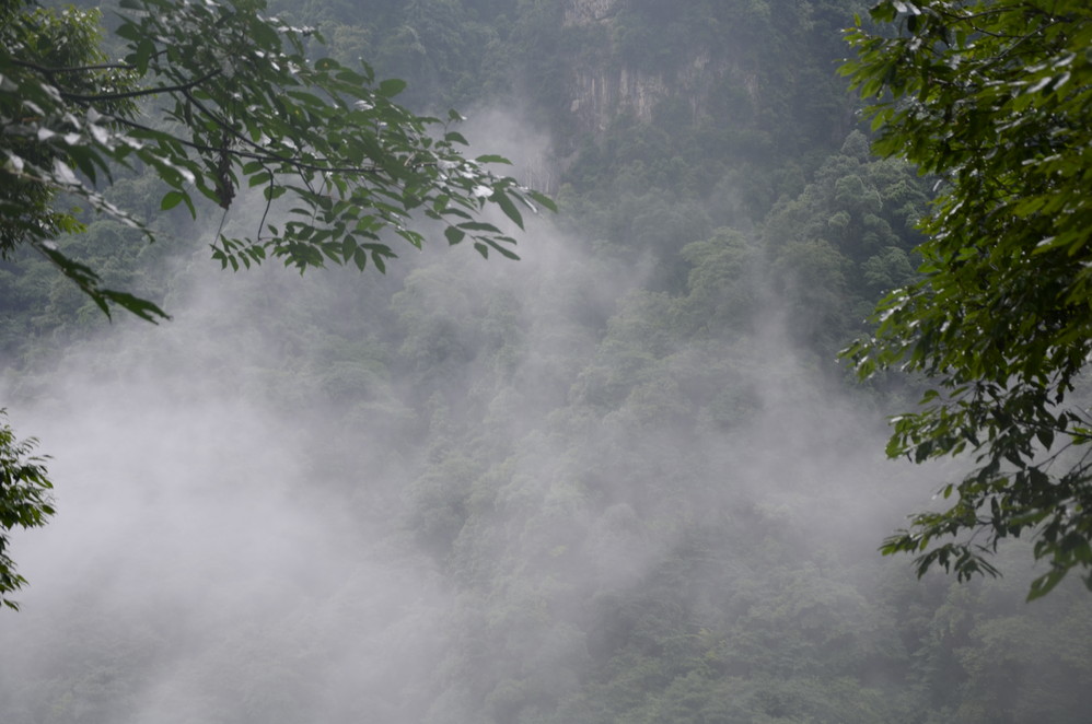 再出发时起了好大的雾,九老洞就没去了,直接往遇仙寺出发,下雨之前好大的雾,差点连路都不认识了,只是在这时结识了另一位独行侠,偶们后面基本一道登山~