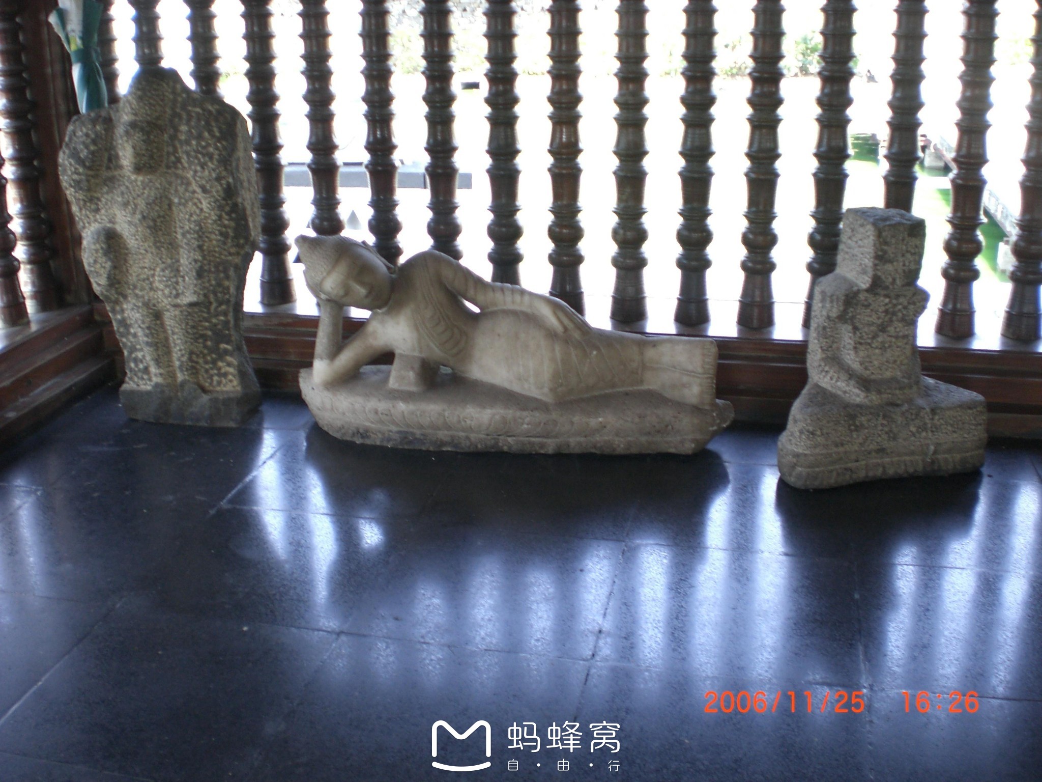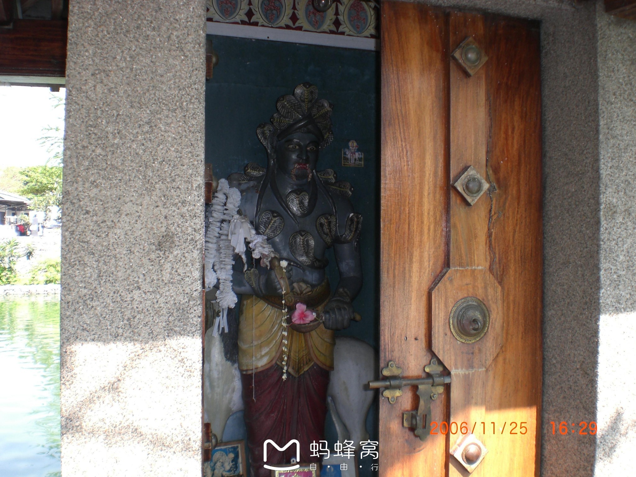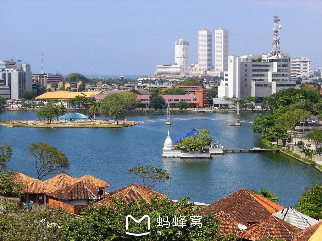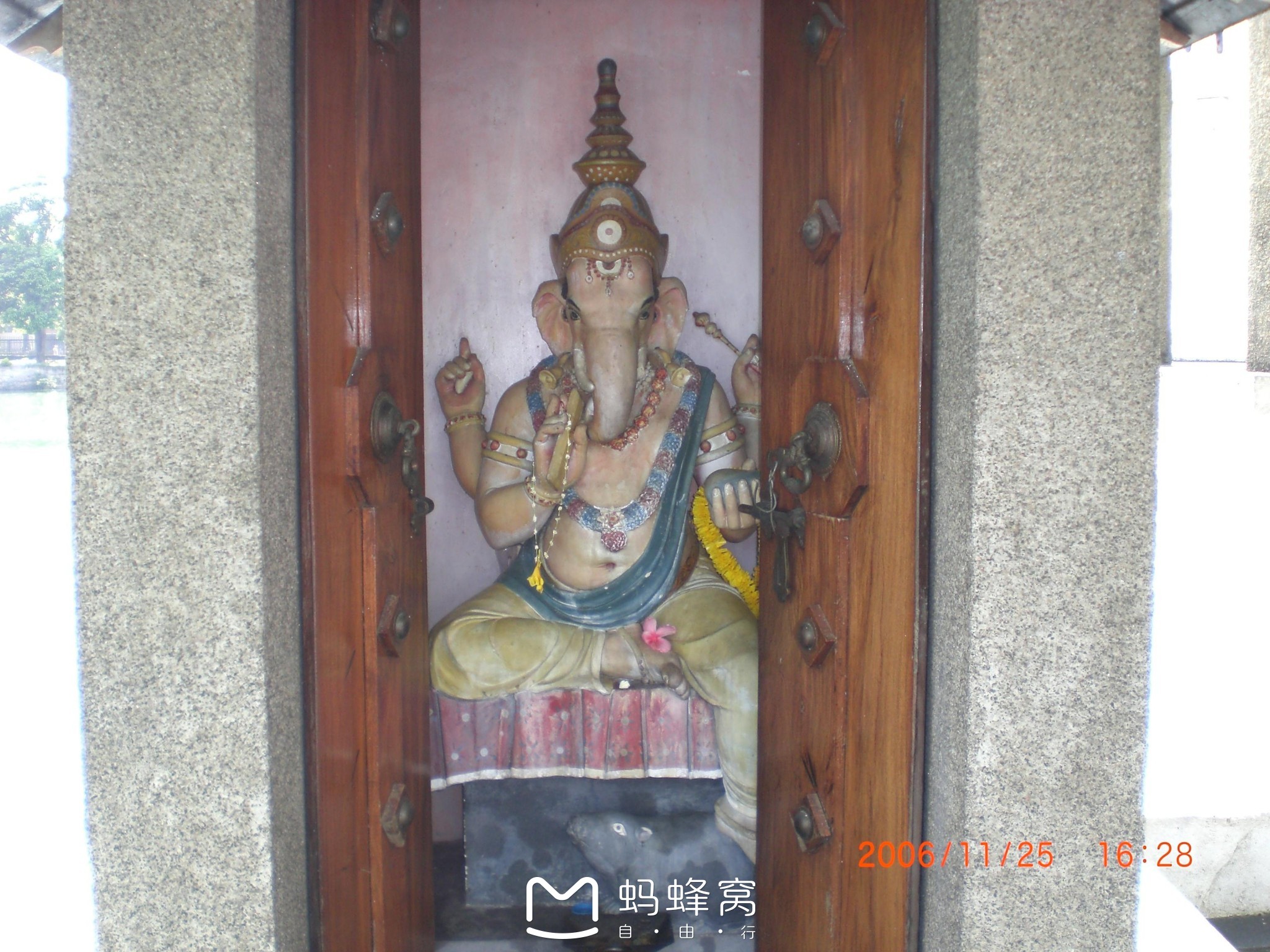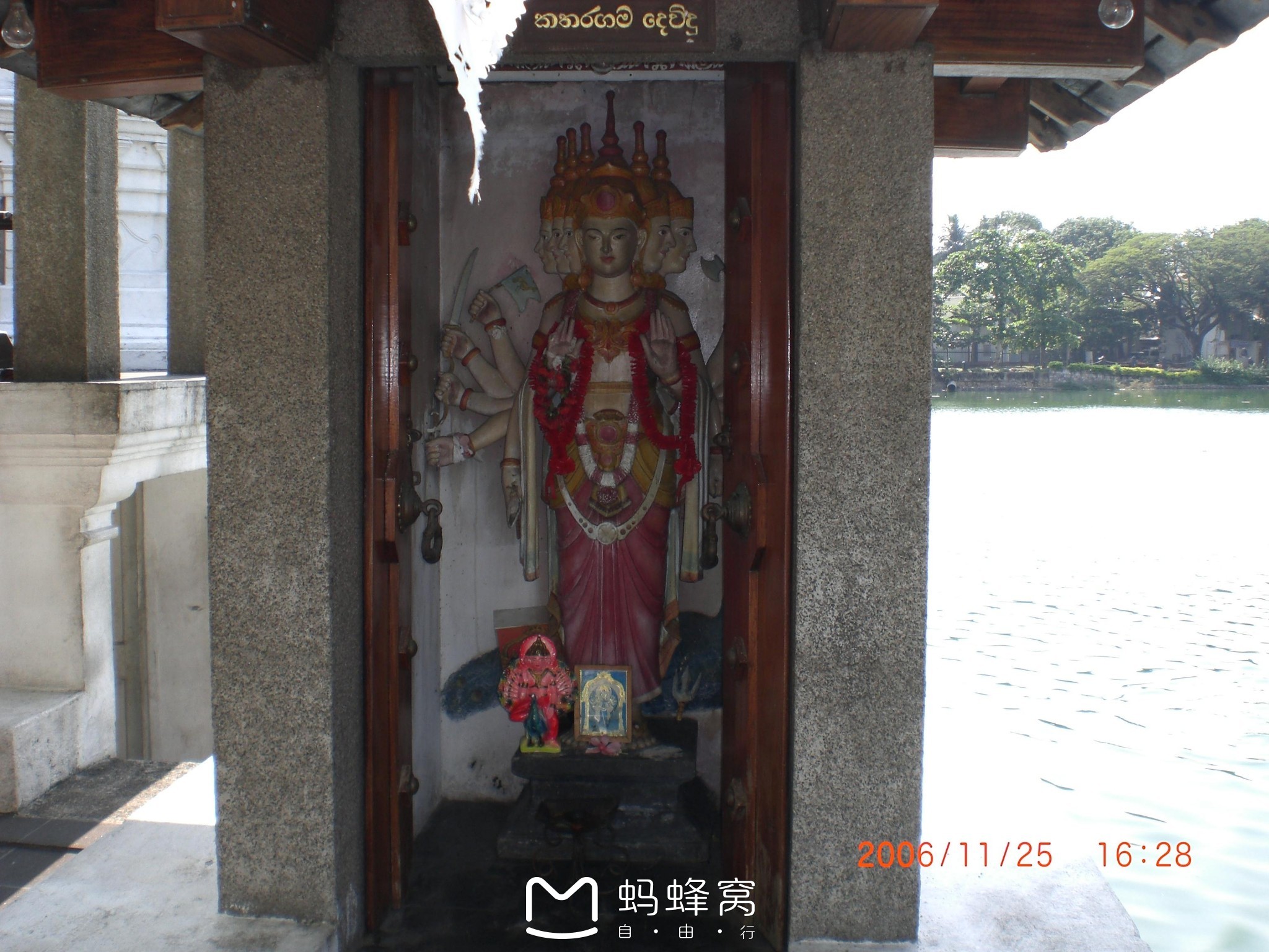 水中庙,是由20世纪知名建筑师杰弗里- 巴瓦(Geoffrey Bawa)设计的。由一座蓝顶木屋,一座白塔及周围的佛像,印度教神像组成。脱鞋进入蓝顶木屋,首先看到两根长长的象牙面对面的围成一个拱门形状,拱门后面就是主佛-----释迦牟尼佛像,四周地板上或木桌上摆放着石雕睡佛,佛头,和一些不知名的佛像。走出木屋,是几座专门供奉的神像,我感觉应该是印度教神像,有一个是象神迦尼萨(Ganesha),其他几个不认识,所以也不敢乱解释。四周水边的台阶上端坐着十几座各种坐姿的佛像,面朝木屋,背对湖面,煞是庄严。拐角处的一座白塔,造型美观,给整座庙宇增添几分神圣与庄严!贝拉湖和水中庙是科伦坡当地人最喜欢的休闲区之一。很多情侣拍婚纱照都在这儿取景呢!