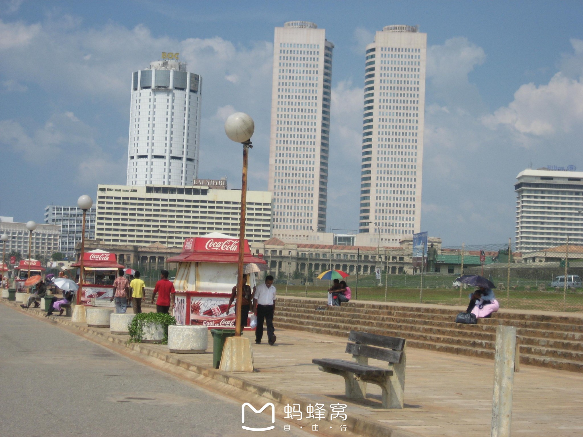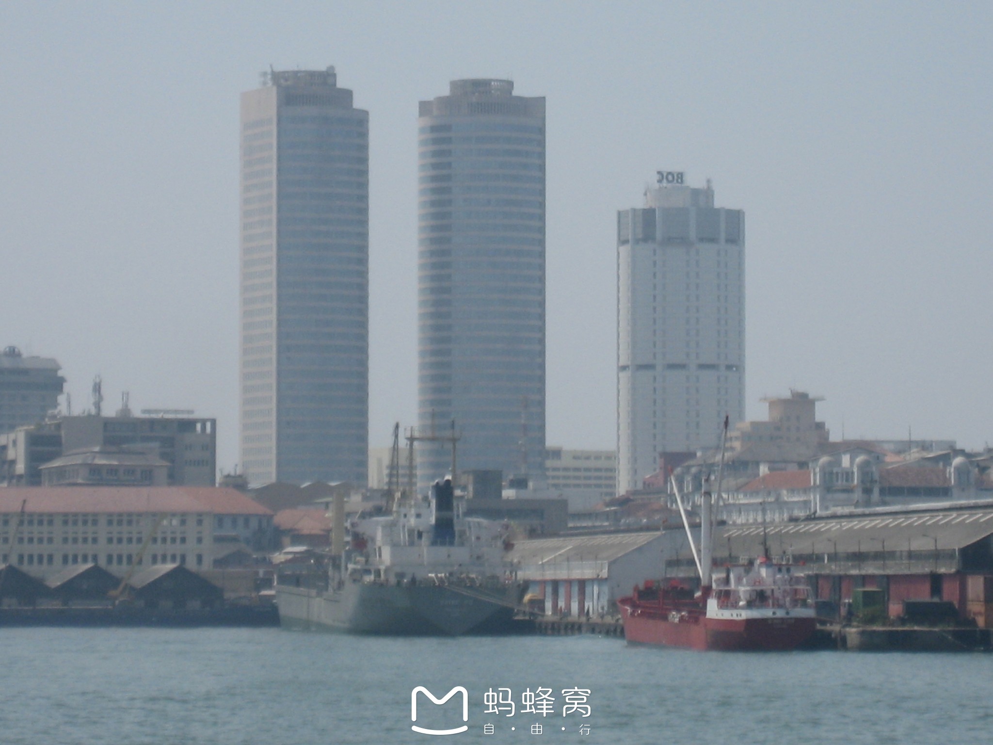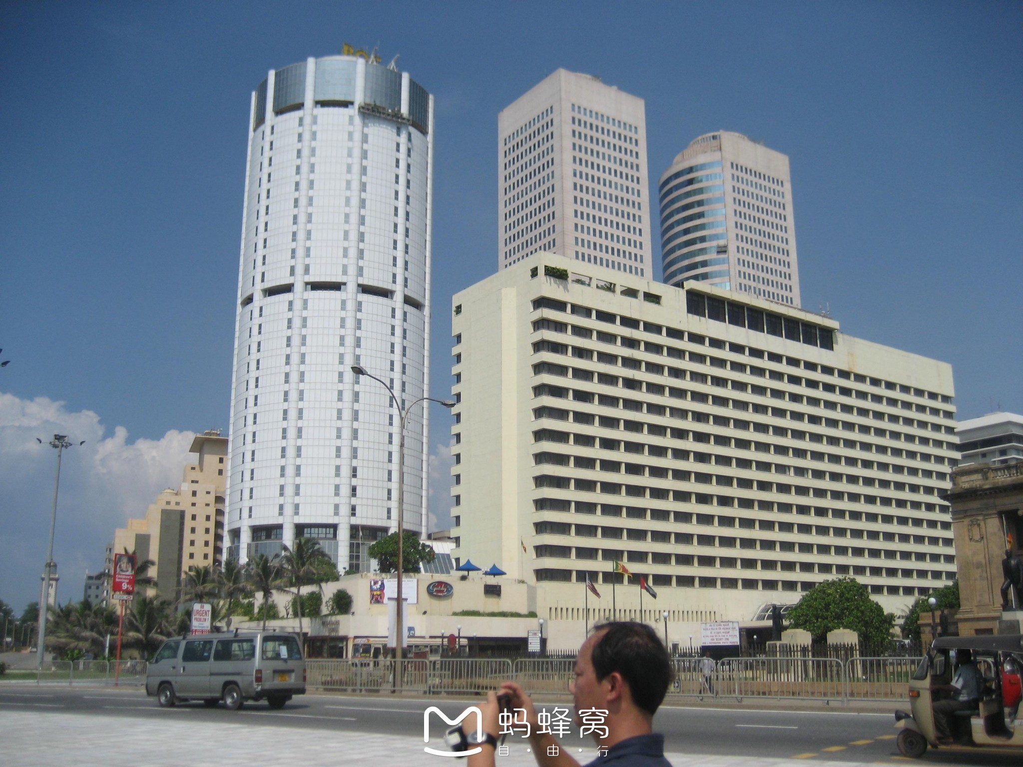 前面两栋摩天大楼是科伦坡世贸中心(World Trade Center Colombo),斯里兰卡第一高楼。这座现代化的双子塔也曾是南亚地区的第一高楼。作为现代化城市的代表性建筑,世贸中心绝对算得上科伦坡的标志性建筑。无论从市区的哪一个角落,总能看到这两栋挺拔的高楼。