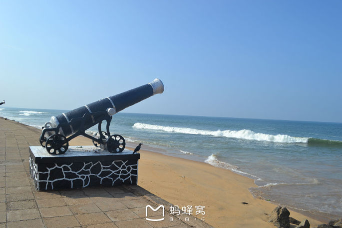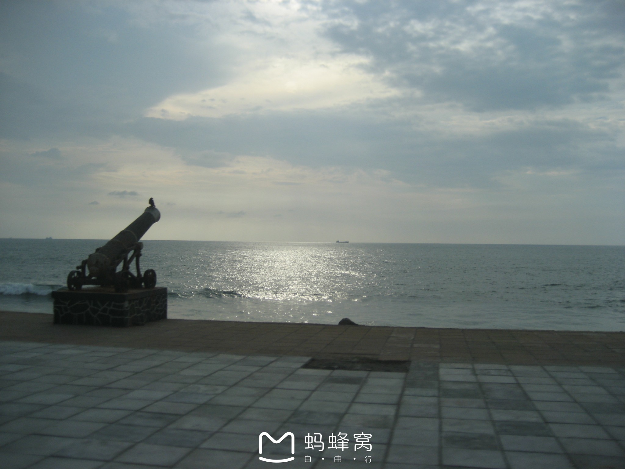 沿着海滨大道向前,吹着海风,看着海浪,好不惬意!海堤下有一片细长的沙滩,虽然不算太干净,太美,但也不失为玩水嬉戏的好地方,很多当地垂钓爱好者,独自坐在竖在海中的一根木桩上,稳稳当当,悠闲地钓着鱼,很是独特!一座座古炮台,面对着大海,仿佛诉说着百年前的威严!