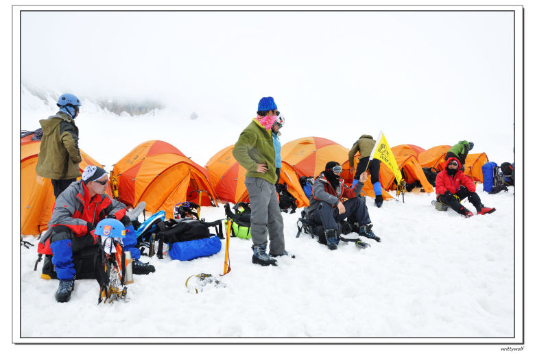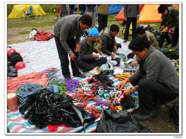 到了大本营休整一天,领取装备,熟悉高山技术。