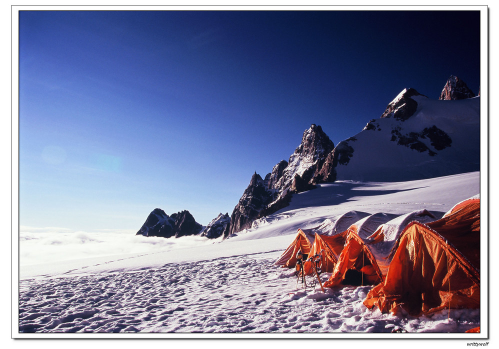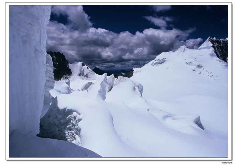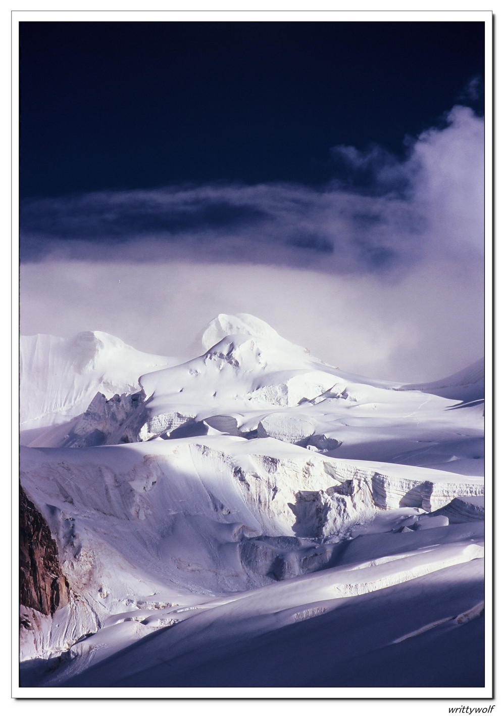 在C2-C3这天,晴空万里,这是雀儿山难得的好天气。到C3都是上升路段,连个横切都没有,痛苦啊!但是这一天的景色绮丽无比,让我们忘记了一切疲劳。