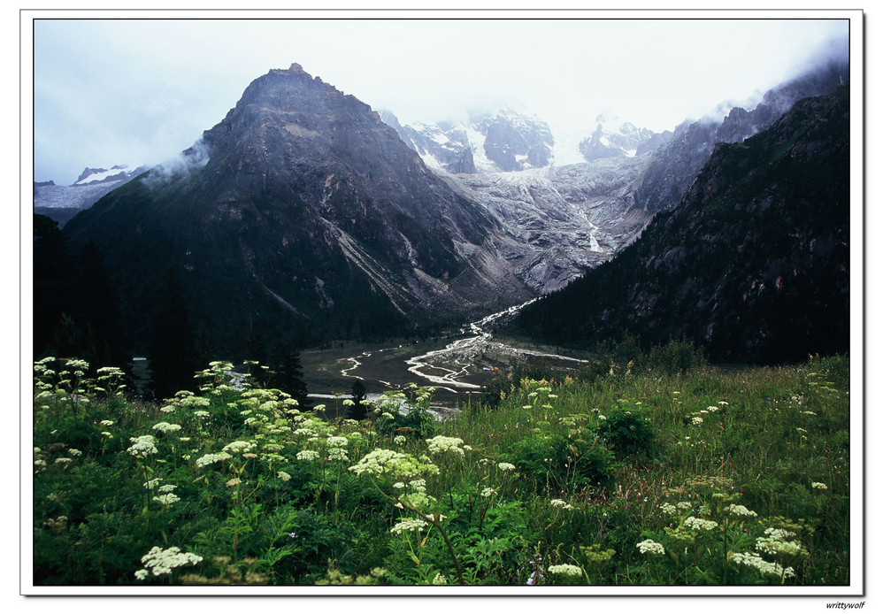 当车在新路海门 口启动缓缓地驶向玛尼干戈的时候,我们忍不住回头望去,雀儿山依然被云雾笼罩,眼睛不禁湿润了,全车人都没说话,都红着眼睛默默地望着渐渐远去山峰和冰川,这时候才彻底明白我们这趟是干什么来了,我们为什么要登山。
