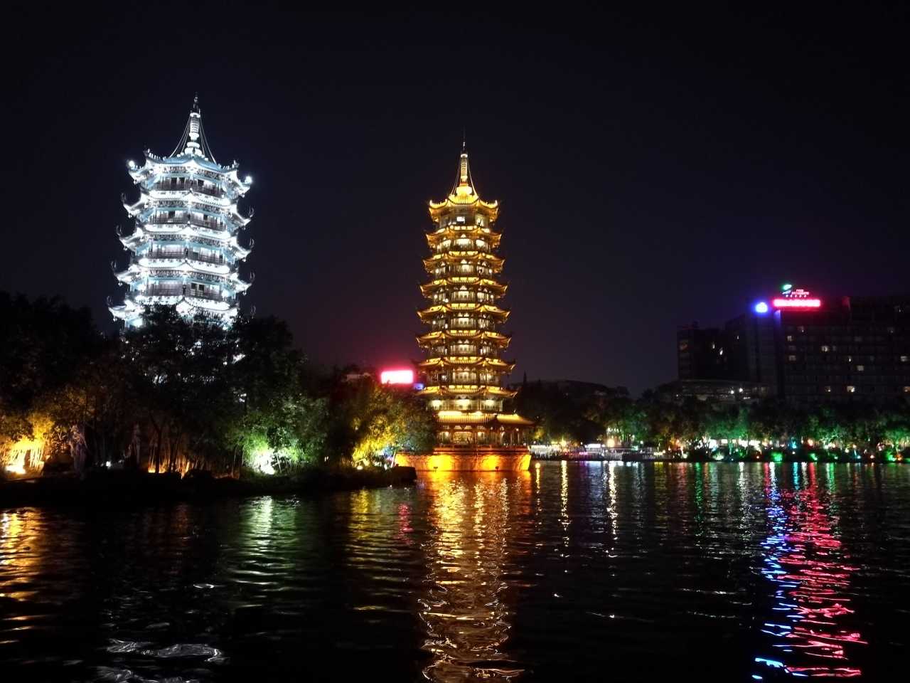 下午五点多到达桂林北站,入住市中心的“城市便捷”,饭后正好天黑,围着两江四湖景区绕了一整圈,领略了日月双塔的魅力和玻璃桥的梦幻。