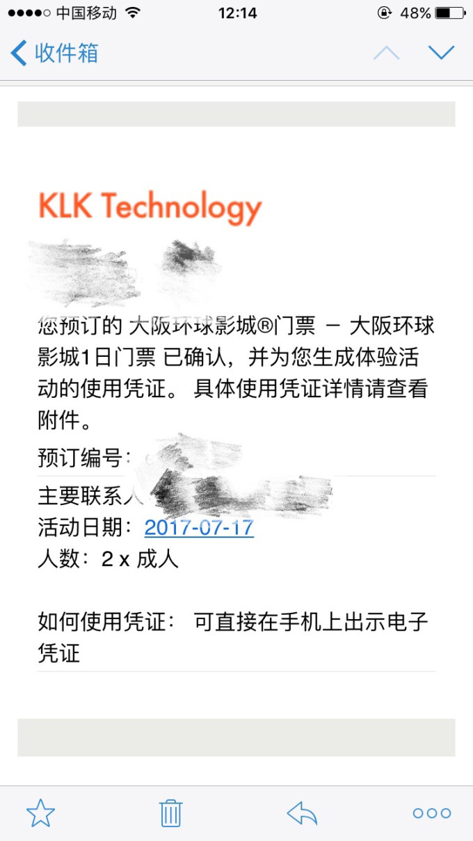 看到很多蜂友说最好提前在网上订好,淘宝神马的都很方便!在5月底的时候看马蜂窝商城的时候发现正在搞促销,环球的票有抢购活动,还有抵用券可以用!看准时间秒到两张,加上抵用券最后710两张,也是相当划算啦!预订后没多久就有工作人员跟我联系确认时间,随后就把门票发到我的邮箱了,进门时刷二维码或者自己打印下来刷都是可以的,非常方便!