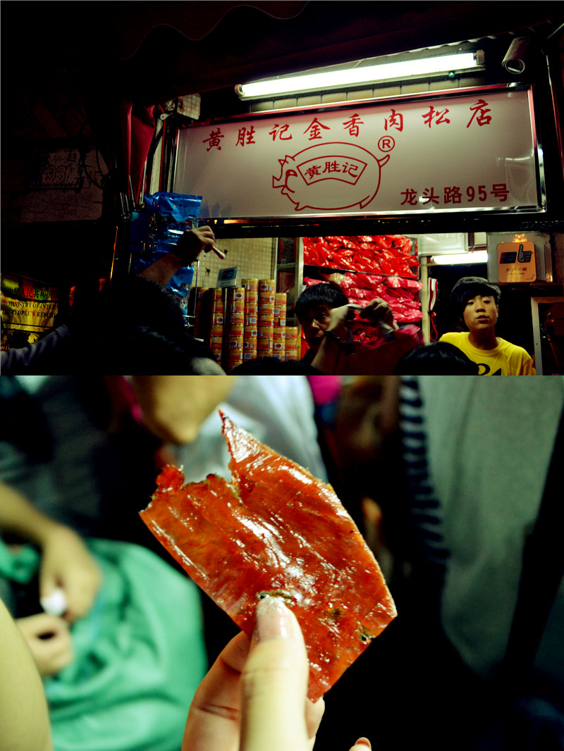 而且意外遇到了 传说中的卖猪肉脯的那家摊 50元一整套