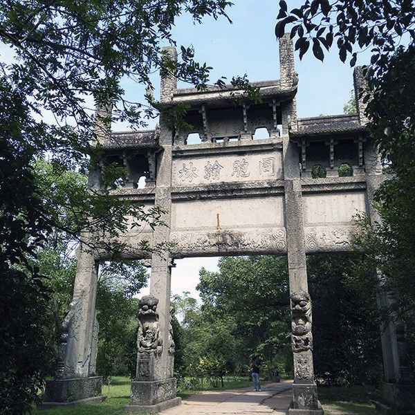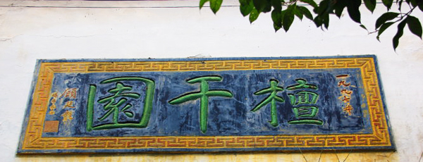 檀干园入口的题字,由原上海博物馆馆长顾廷龙题写于一九九七年,古朴苍劲。 据说,顾廷龙先生题字时已94岁高龄,题字数月后即飘然仙逝,此字竟成遗墨。