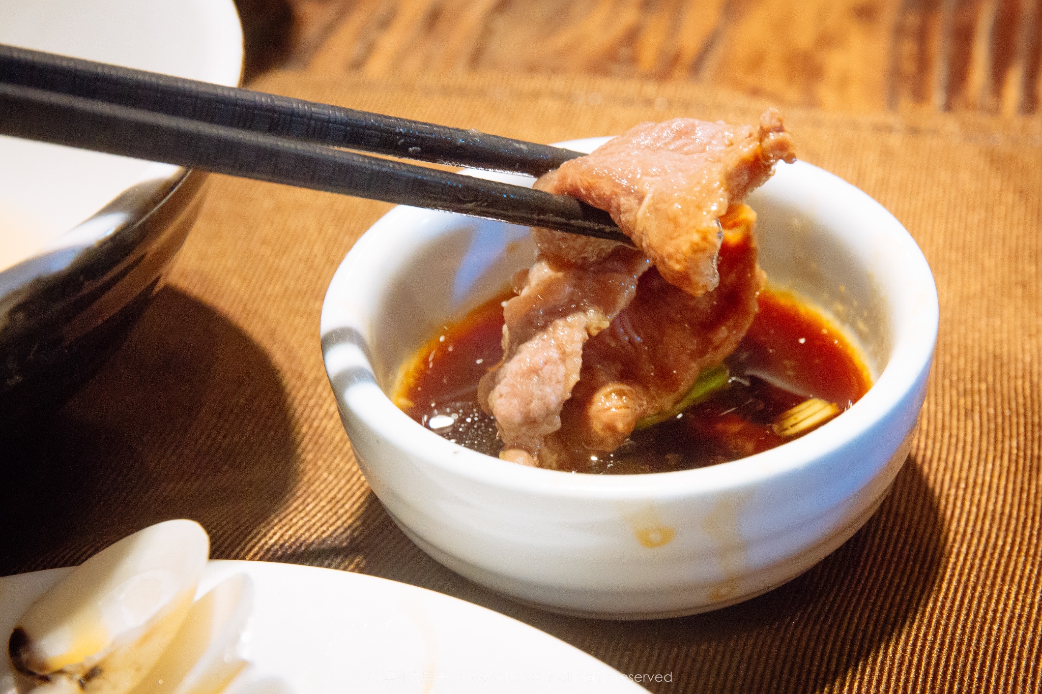 吃完贝类,服务员终于帮我们下肉,所有粤菜馆都对肉的新鲜度很追求,所以肉自然也是鲜美,当然,粥水煮出来,也同样原味。