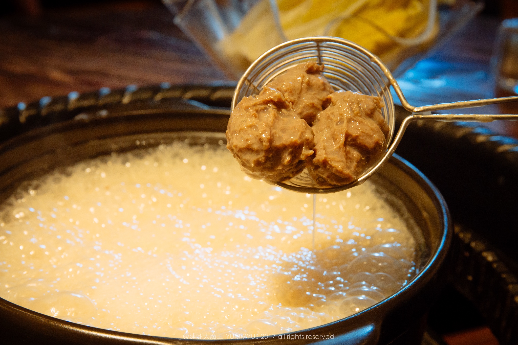 很快粥底就上来了,我们还是第一次见粥底火锅——滤掉米渣的鸡汤粥水在锅中沸腾翻滚,远不同于其他地方的清汤或麻辣。