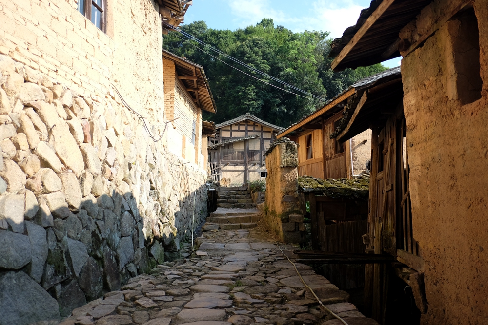 从前去过不少古村古镇,它们大多是择一处平地而建,而福建省尤溪县的桂峰村则是依山就势分布于村的三面山坡上,形成了层层叠叠的气势,再加上错落有致的布局,看上去整个村子的建筑像是连在一起的,颇为壮观。和那些已经被过度商业开发的古村古镇比较起来,桂峰村显得十分质朴宁静,村里有些斑驳的古墙也倒塌了,但尽管如此,它却有着丰富的历史文化遗存和深厚的朱子文化渊源,在2007年更是被国家命名为第三批中国历史文化名村。