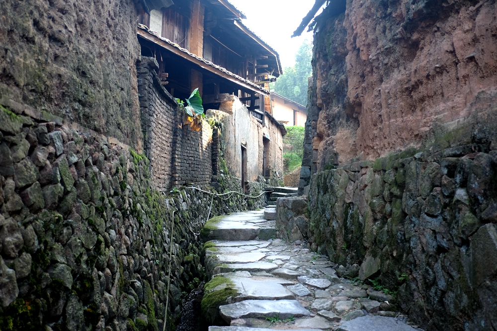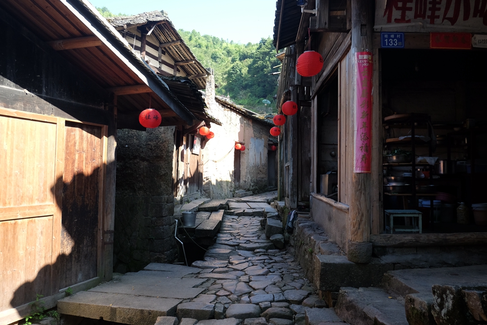 桂峰村有不少石板古道,因为村里的房子挨得比较紧密,所以曲巷通幽,峰回路转。听当地的老大爷说,村里的年轻人基本上都外出发展了,只有留下老一辈守在这里,所以整个村里人很少,并非儿孙不接他们去城里住,而是老人家过惯了这里的安逸生活。