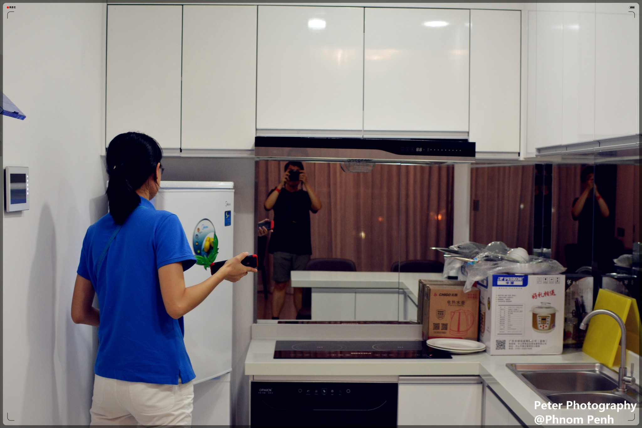 这是我们第一天在金边住的宾馆:EASTLAND Hotel & Apartment(伊斯特兰德酒店)定的时候没怎么注意看,酒店的前台也平淡无奇,但住进去之后就觉得:这钱花的真值。不但空间极大,有一个超大的客厅和阳台,厨房的空间也不小,还有一整套厨房设备(可惜住一晚用不上)