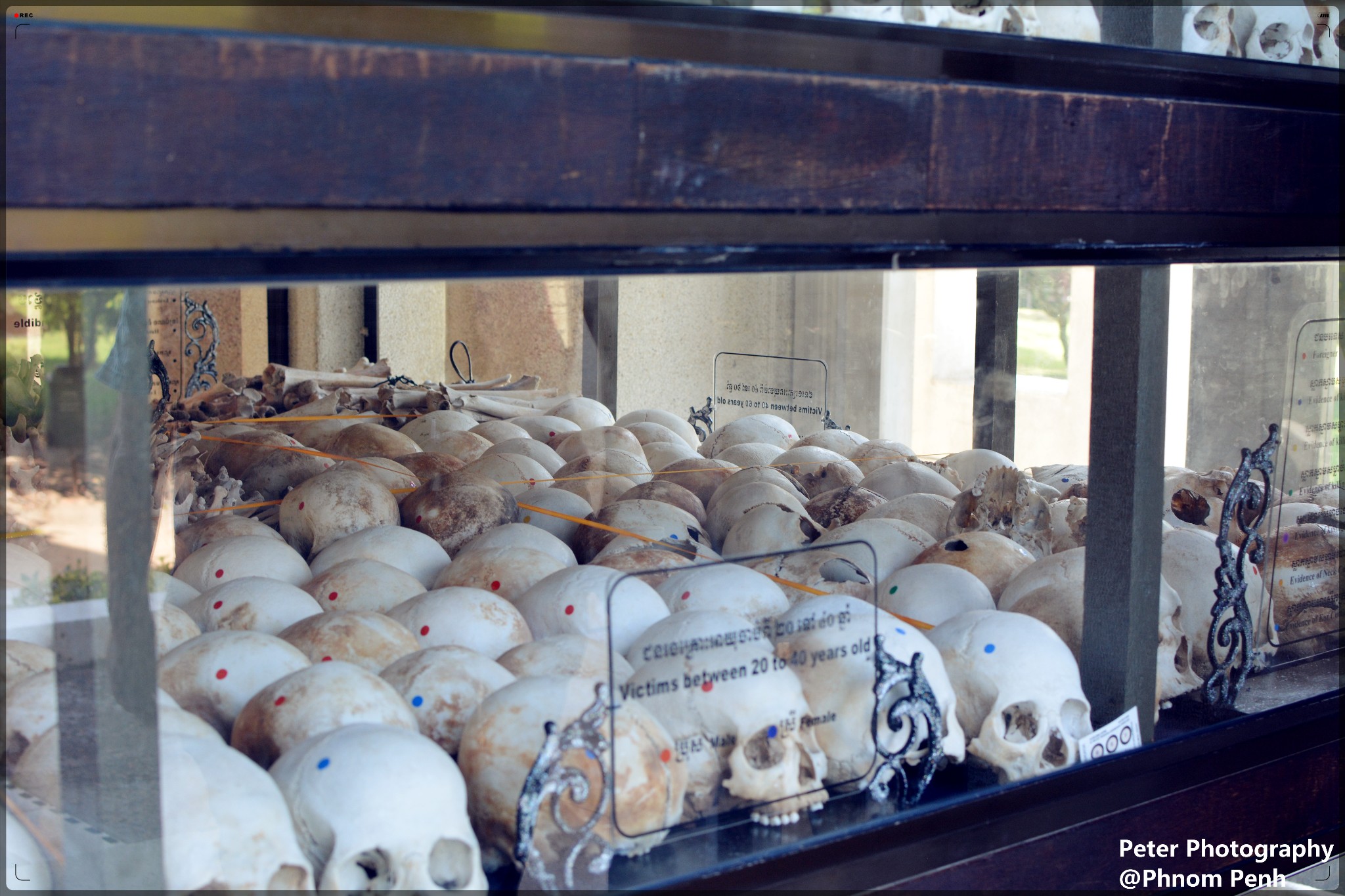 钟屋杀人场是我们此行玩的第一个景点,也是最阴森的地方,在门口可以租借到中文的讲解器(免费)随着讲解器的声音,我们缓缓地走在钟屋杀人场之内。在1975年红色高棉掌权之后,他们把整个柬埔寨变成了人间地狱。婴儿甚至直接在母亲的面前被人抓住脚抡起来,将头撞在树上,脑浆迸裂,惨绝人寰,看完之后心情相当沉重。