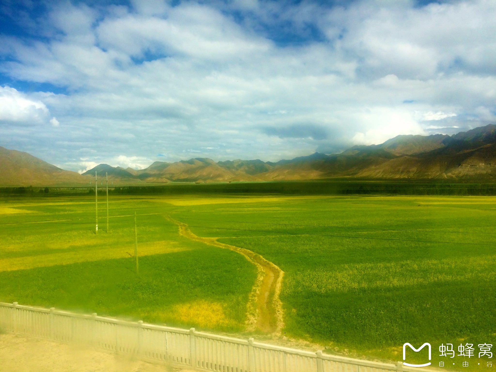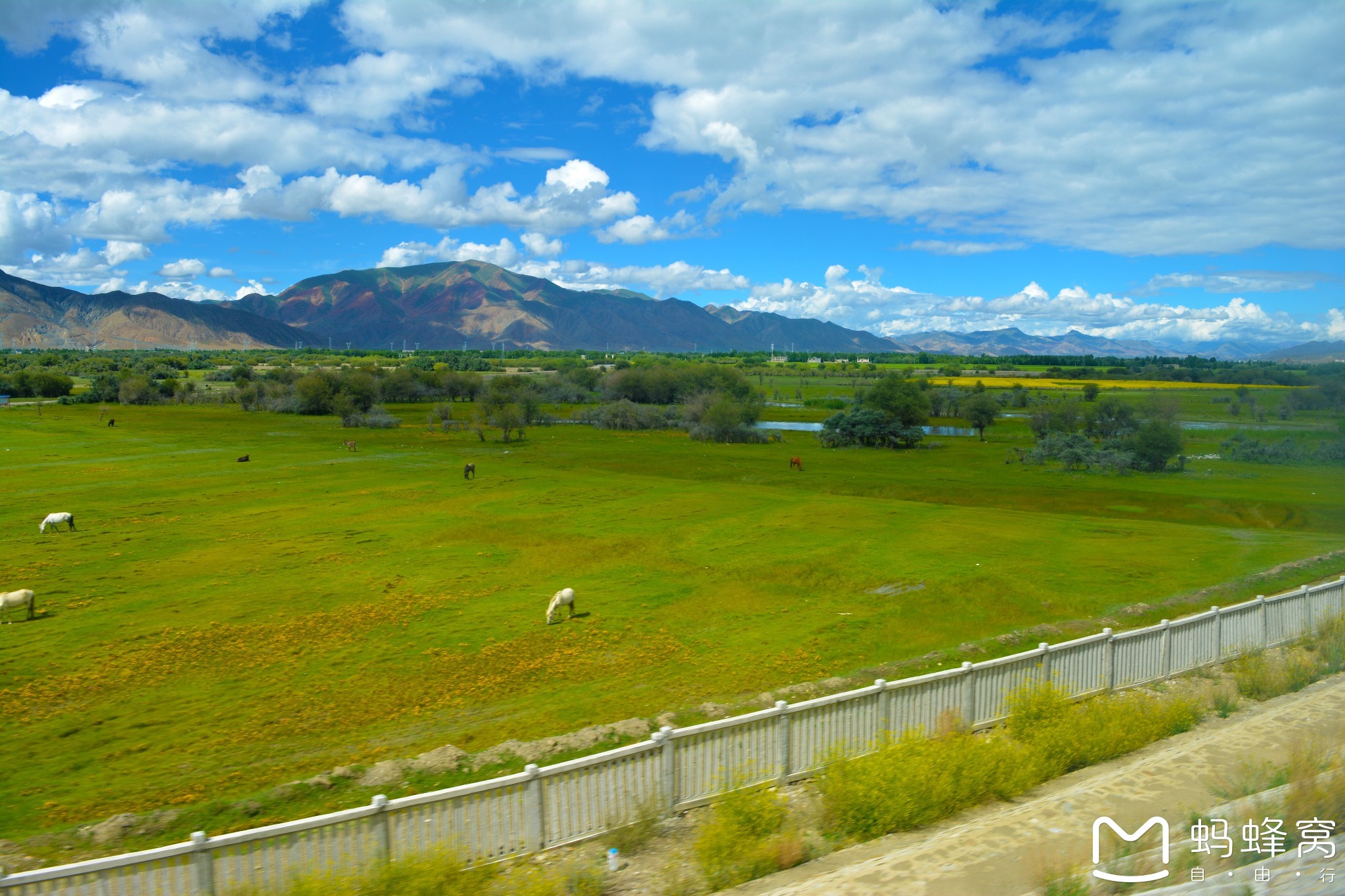 透过火车窗外,这里的地形主要集中在雅鲁藏布江、年楚河、朋曲河沿岸的河谷地带。有些湖泊沿岸的狭窄地带,地势较低,牧草丰盛。