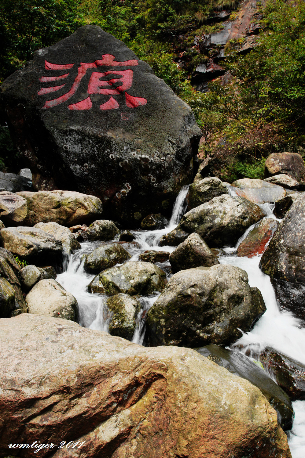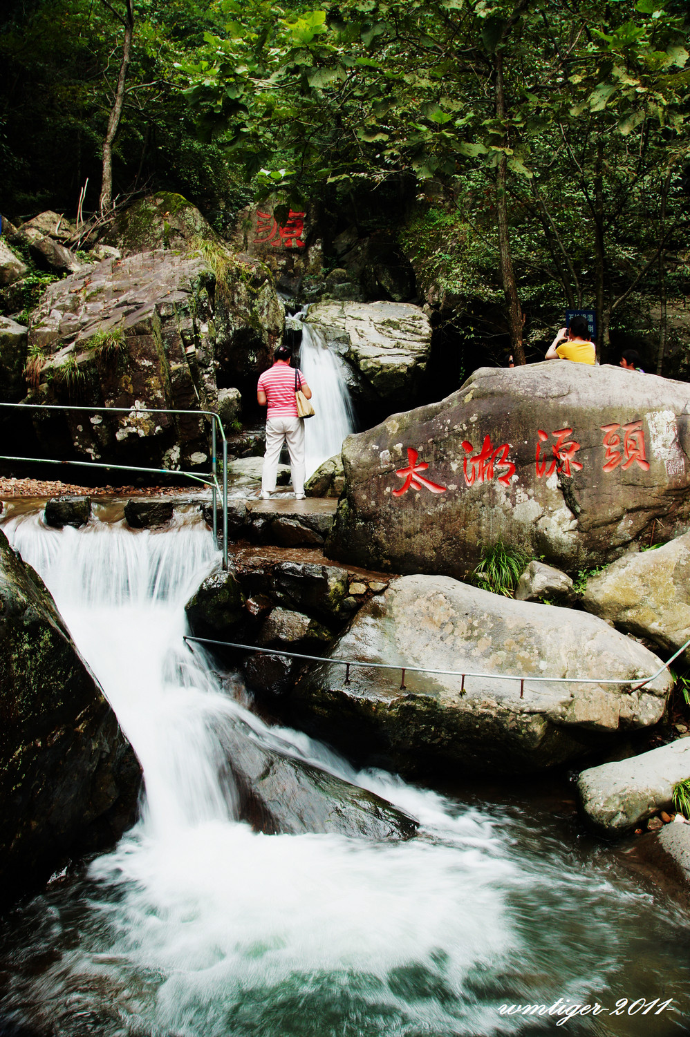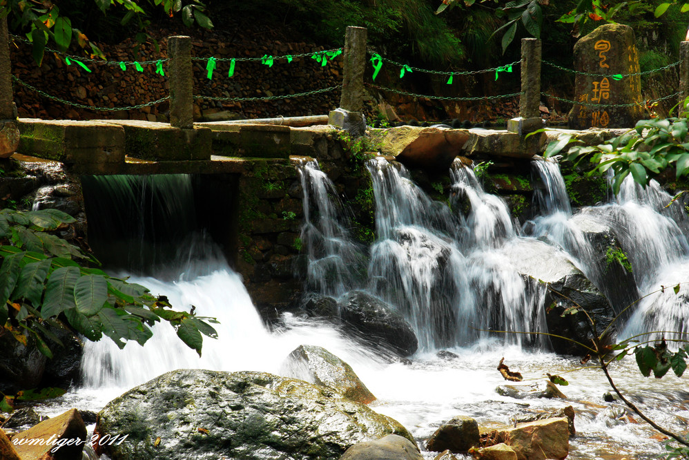 第二天睡了个懒觉,9点半从临安出发,经过了一段刺激的盘山公路后,进入了溪水相伴的通向太湖源景区的路,行驶了35公里后,到达了目的地-太湖源。可能是前几日连续下雨的原因,景区内的溪水从峡谷的岩石间汹涌而出,撞击岩石发出的水声,非常大淹没了游人的喧闹声。如果白水涧显示的是一种大家闺秀的灵巧美的话,此时的太湖源更显示出了一种阳刚美。
