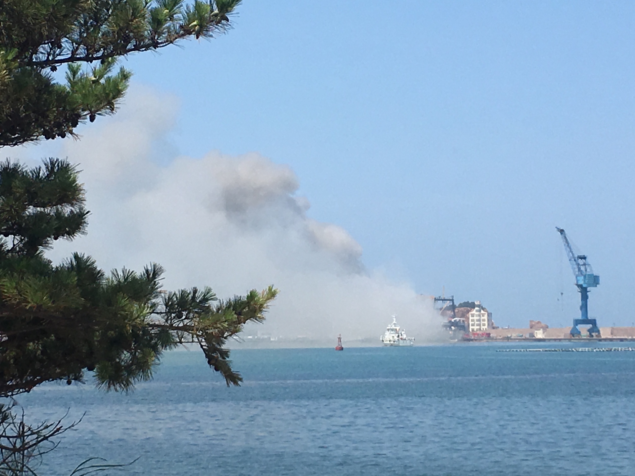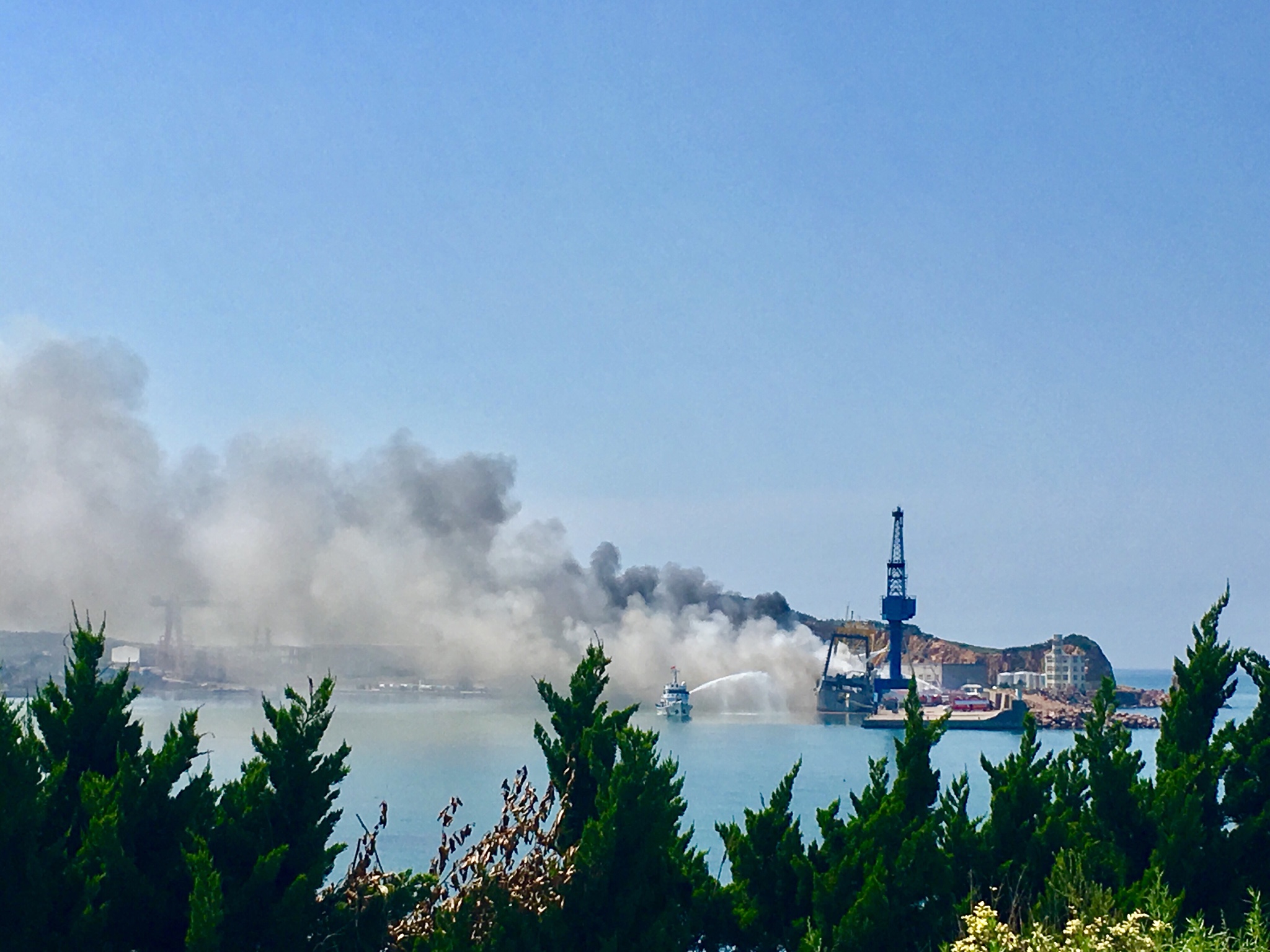 偶遇火灾,听说是俄罗斯的船着火了