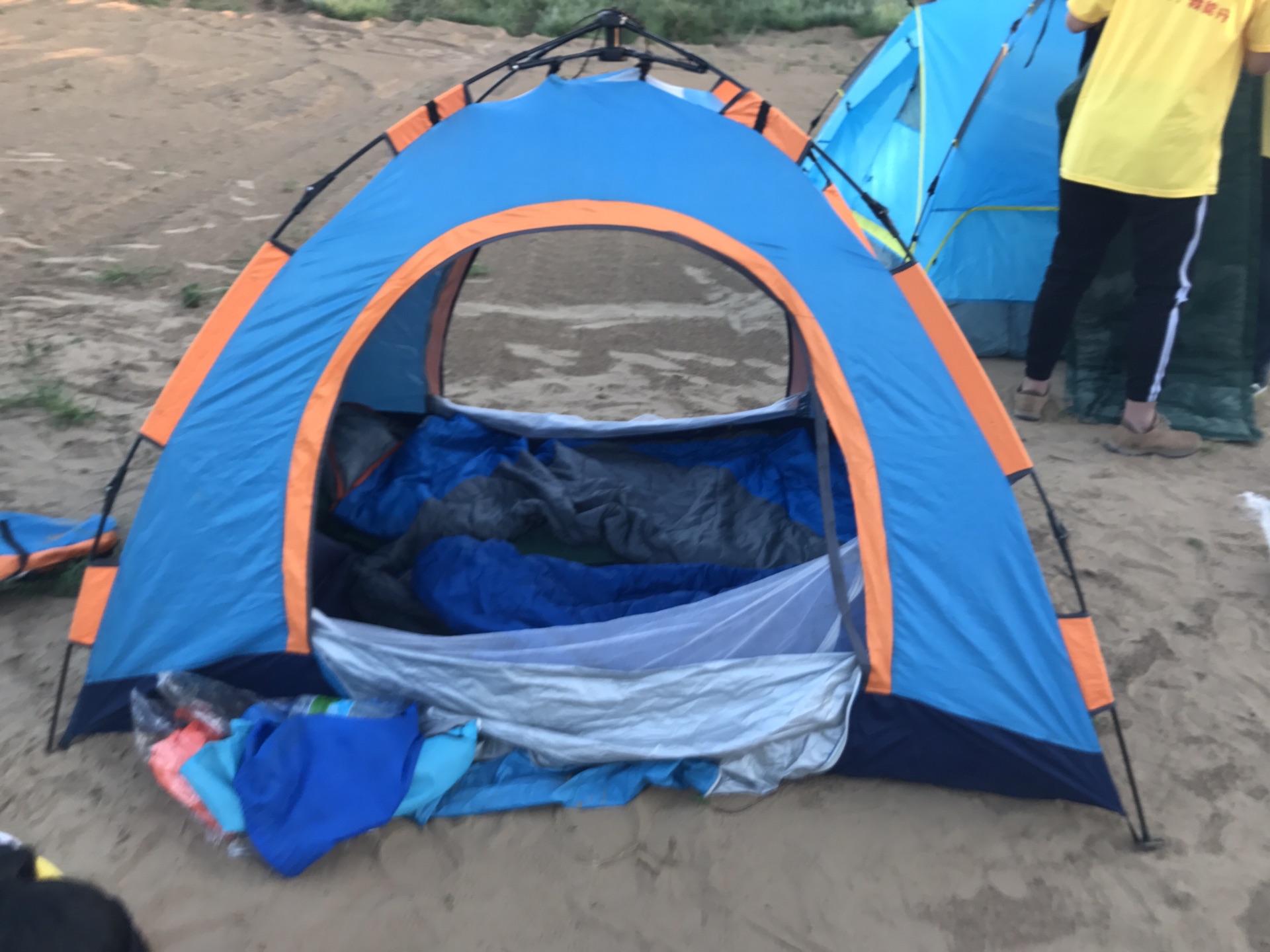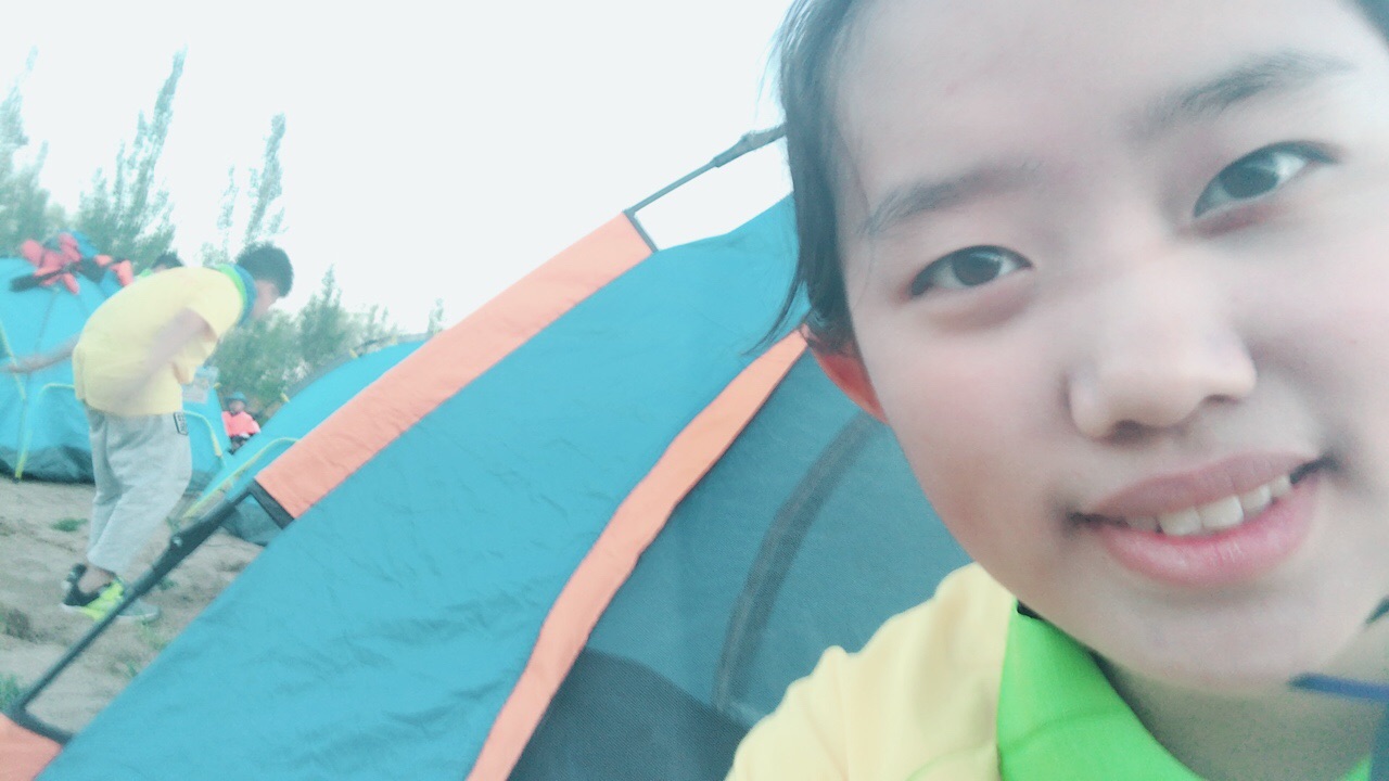 帐篷是别人帮忙搭的,但是我和妹妹住的。