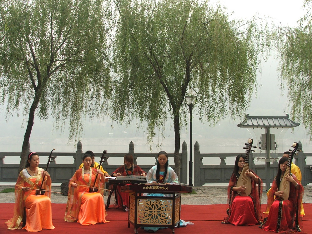 景区内有表演, 我们停下来听了几曲, 很美.
