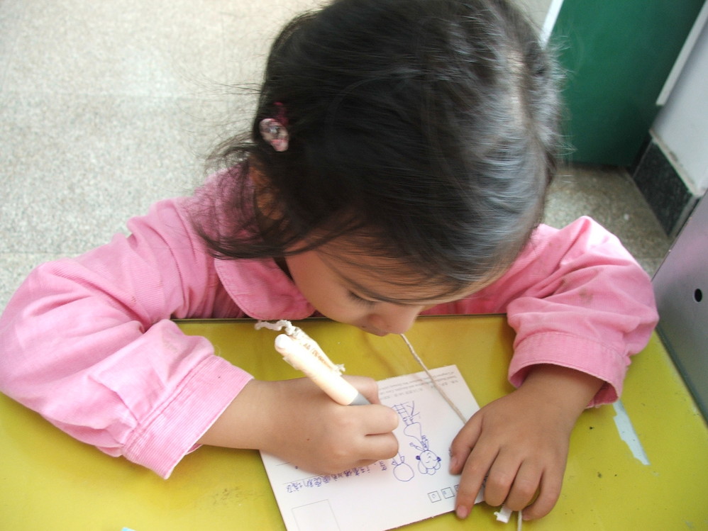 这次一路我们都买明信片, 找邮局, 小妞很认真的给爸爸写明信片.