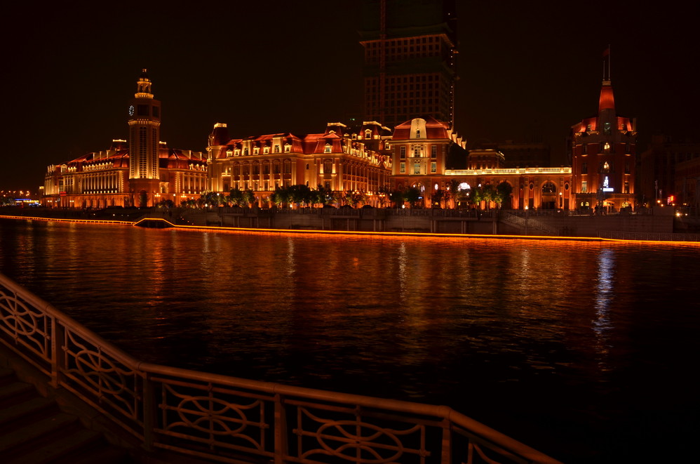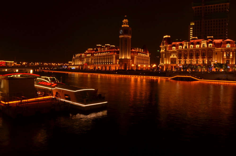 临走的时候,出租师傅特意在火车站不远处的河边停下,他说看看天津的夜景吧,拍拍照,这里很美。