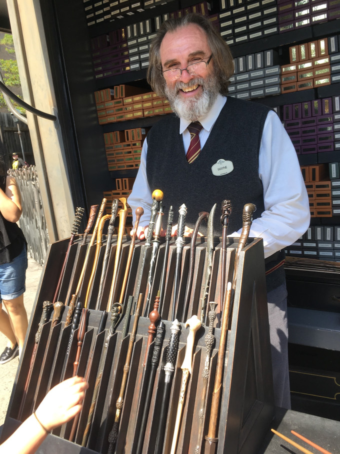主角的几个魔杖(在魔杖头部有一个激光玻璃珠一样的东西,稍微贵一点),是可以在魔法世界里互动的哦,比如向喷泉里的蟾蜍挥,蟾蜍会喷水。我的魔杖没有这个功能,感兴趣的可以买互动的,查一查互动点,有好多。