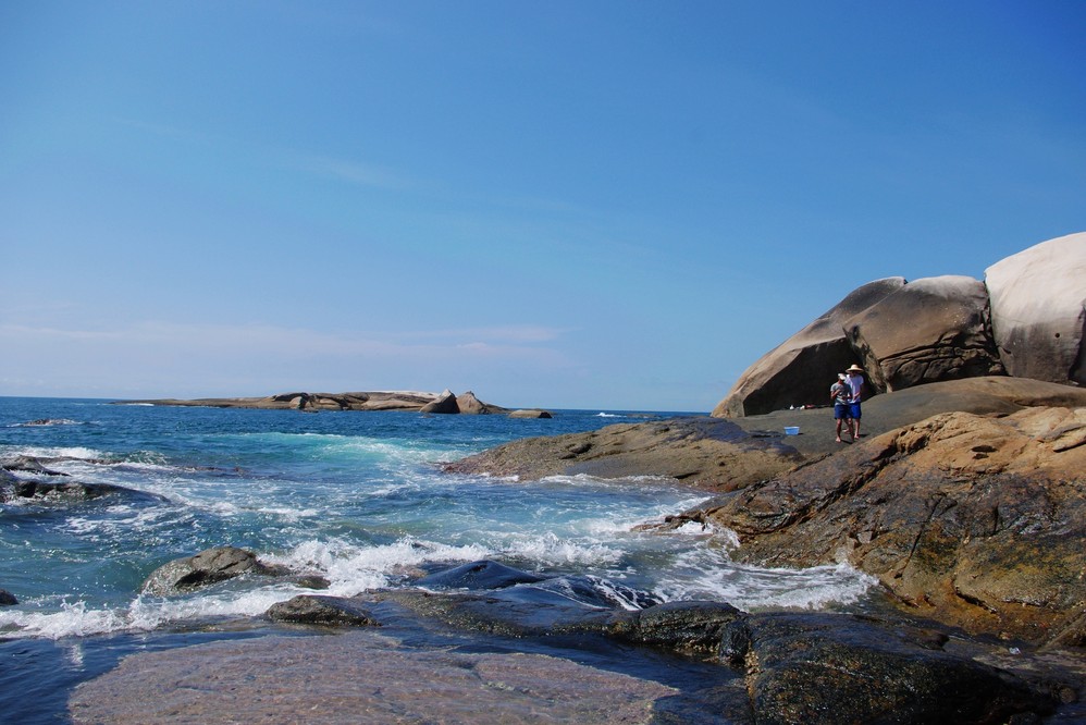 海南 文昌 的铜鼓岭风景区 算一个,没有被完全开发,你大可以找到很多你自己满意的地方痛痛快快的玩一整天,人们只知道三亚 的海水很干净,所以大片大片的人去了三亚 ,试想,那么多的人能玩自在嘛!~其实文昌 海岸的漂亮很少被岛外的人所知!~站在铜鼓 岭上俯瞰远处的月亮湾,真的犹如一轮弯弯的月牙镶在碧蓝的海水里 ;石头公园 怪石嶙峋,湛蓝的海水拍打石头生出巨大洁白的浪花。蓝天,白云,茂密的植被,蓝色的海洋,形状各异的巨石,石头缝里躲着的精灵们,任何的形容词也显得苍白