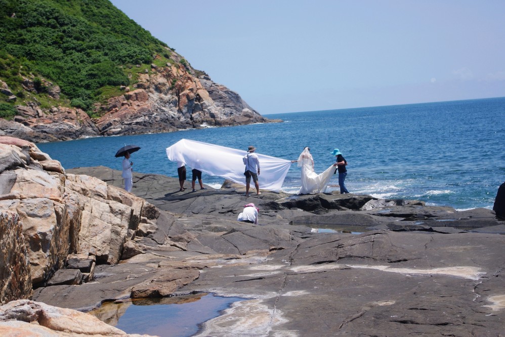 大概是因为人少,很多影楼把这里当成天然的影楼,新娘很漂亮,新郎有点老,哈哈。我们哥几个都觉的这哥们赚了,这张是我偷拍的。后来两三个小时之内遇到四五队人马,我们几个就逐一讲评每个新娘了,本能性忽视新郎!~~~