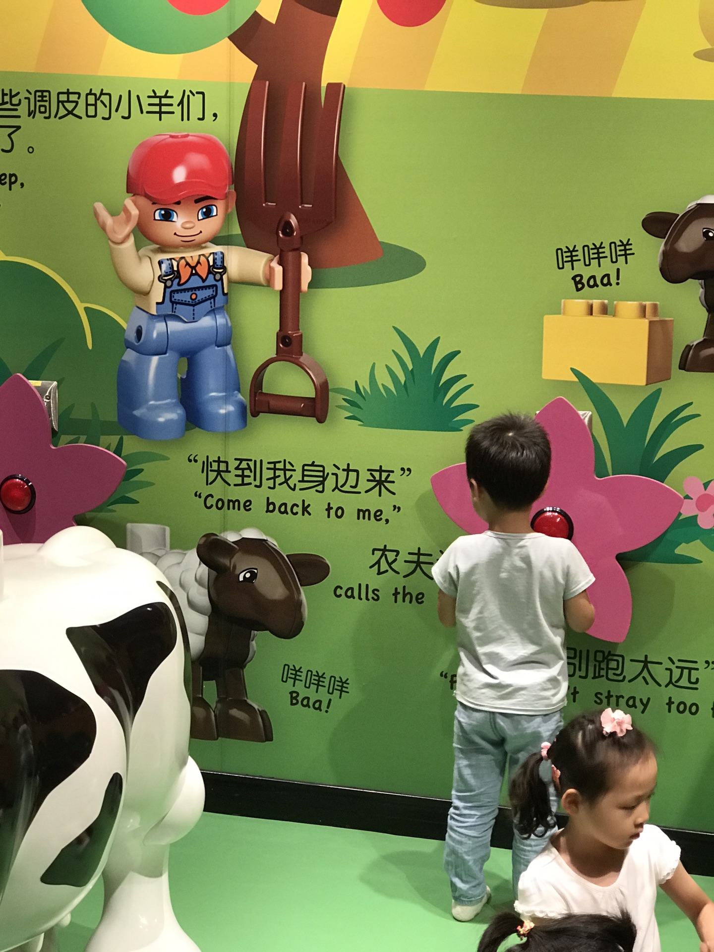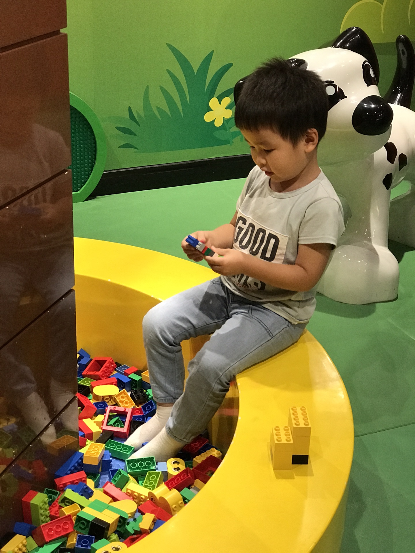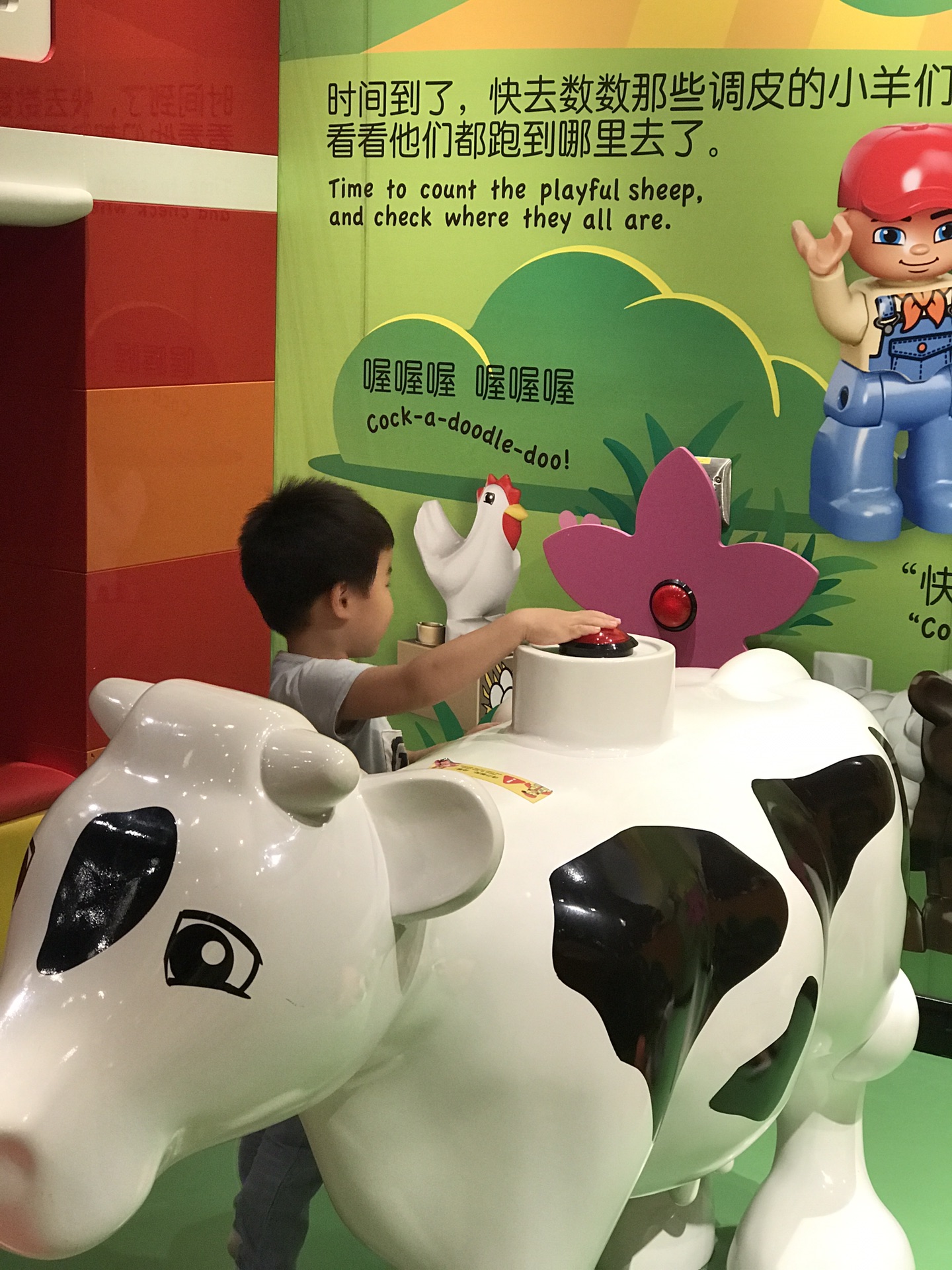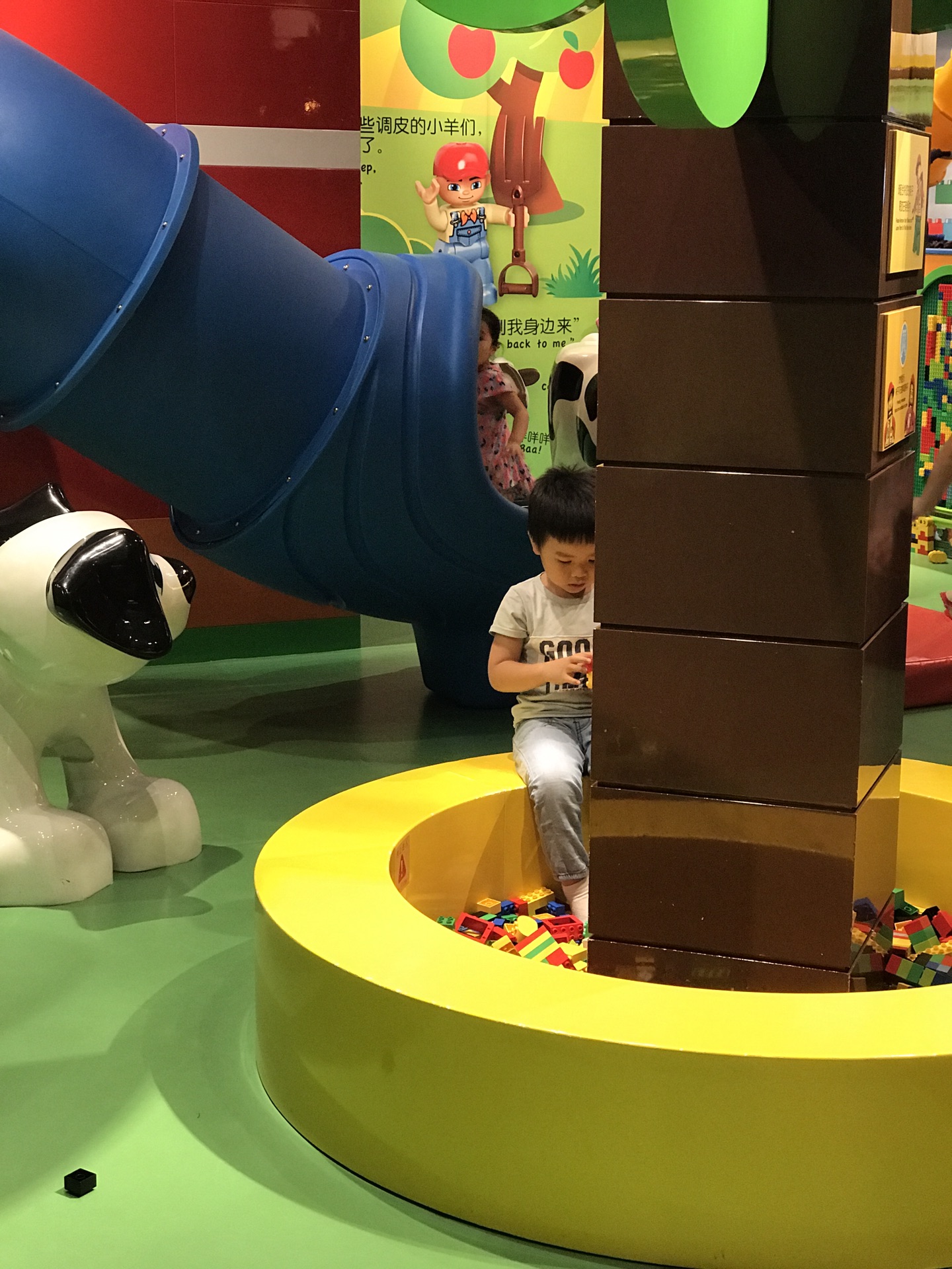 而我么直接去了得宝农庄,这里最合适我这个年纪的宝宝了。有小滑梯,有动物叫声的按钮,也有乐高大块积木。仅1.2米以下入内,大哥哥姐姐们要注意哦,否则在一起玩对小宝宝不安全