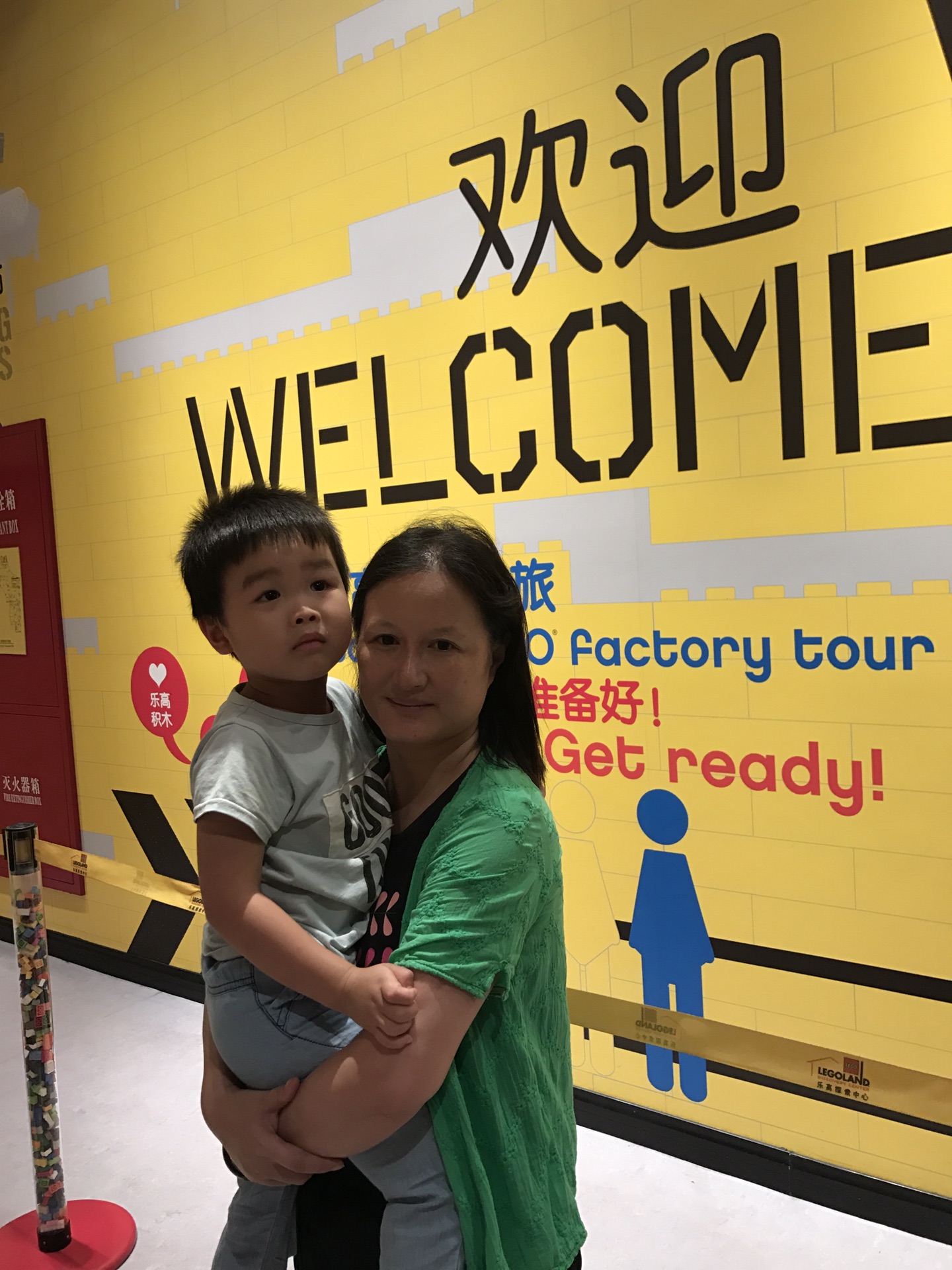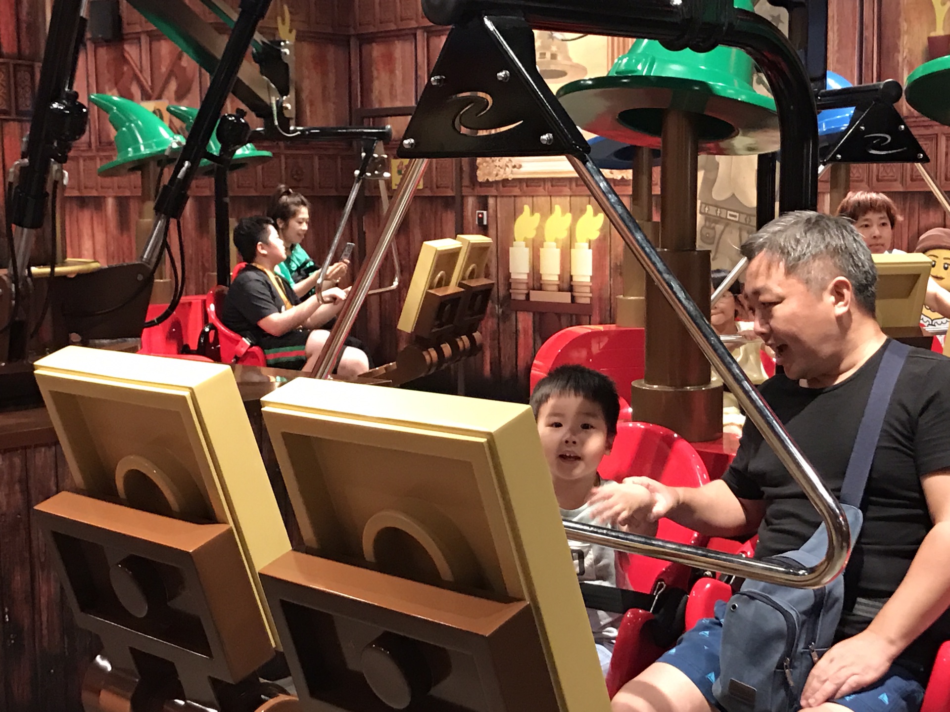 第一个项目在门口,是乐高工厂,是一场一场放人的,所以全体扫完票都要在此排队,一批20个人。等待区有小电视在上面放,类似飞越地平线外面先放的小电影那种。