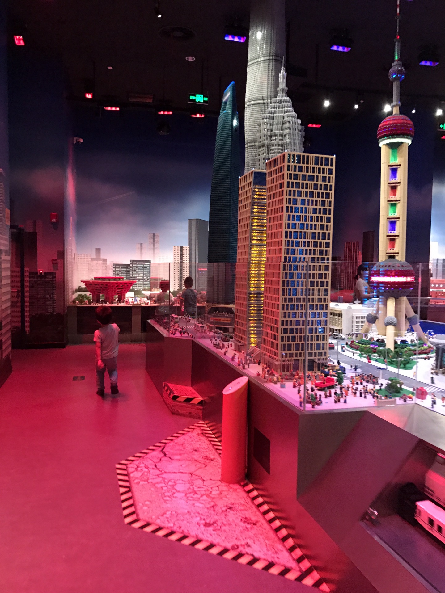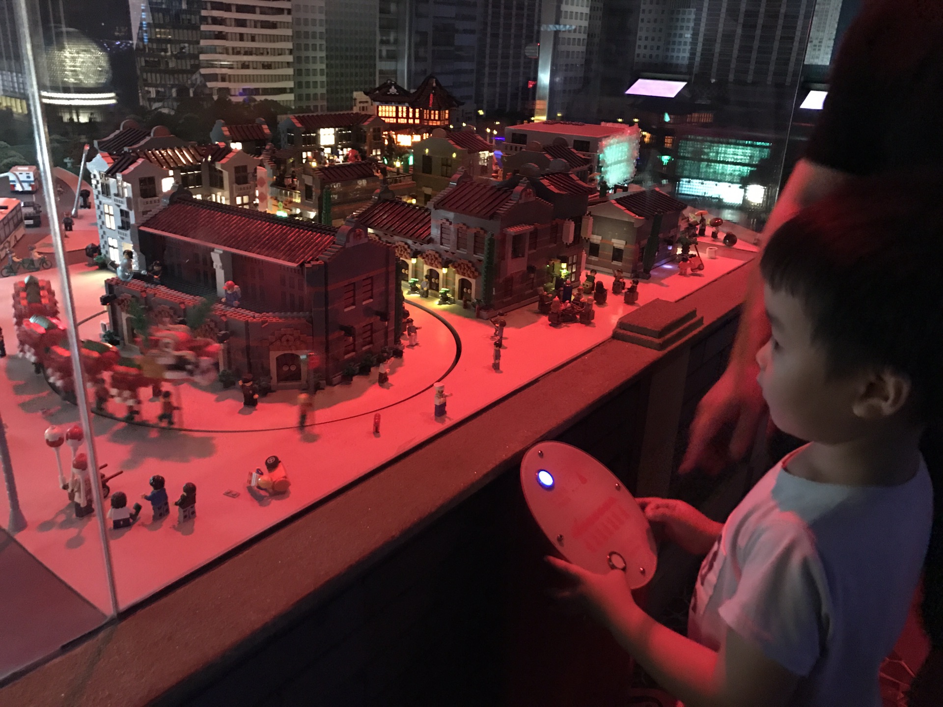 然后再进一扇门就自由活动了,往右是乐高古堡,玩射击的,大人小孩可一起玩,我不懂怎么玩。于是我们往左,是迷你天地,这里所有的上海滩景色模型竟然都是乐高搭的。厉害了!